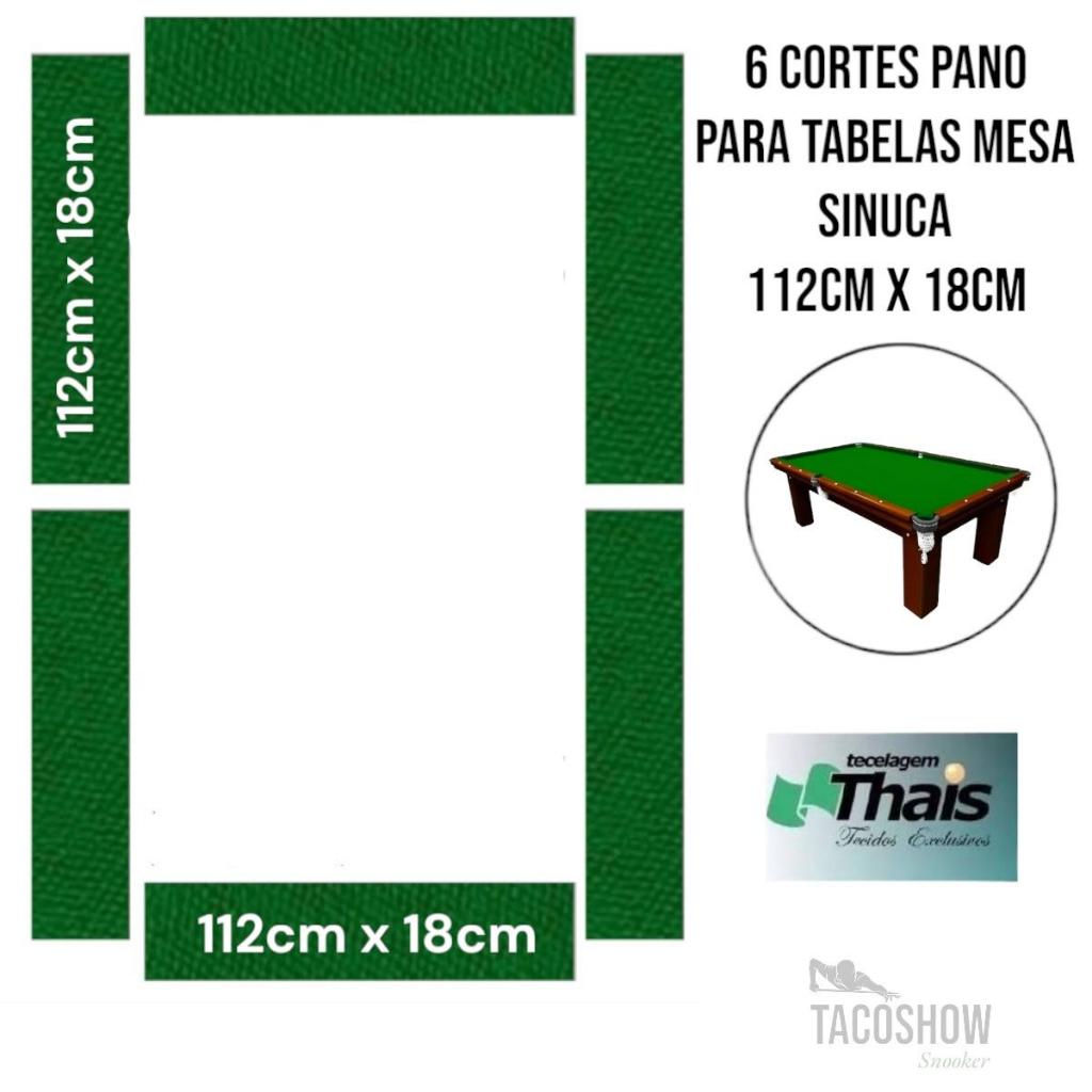Pano Para Tabela de Mesa de Sinuca Bilhar 1,12 m x 0,18 m Jogo (6 cortes) Thais Cores Kit Tabelas
