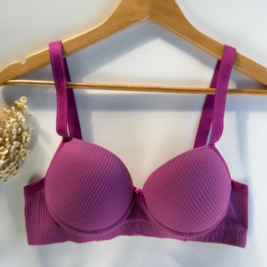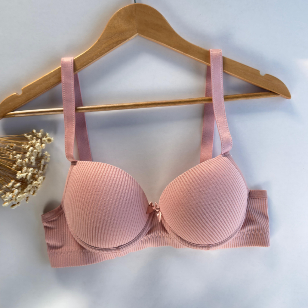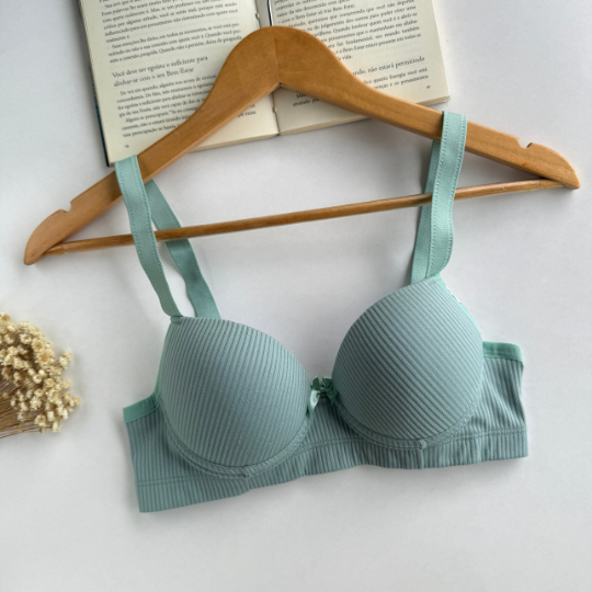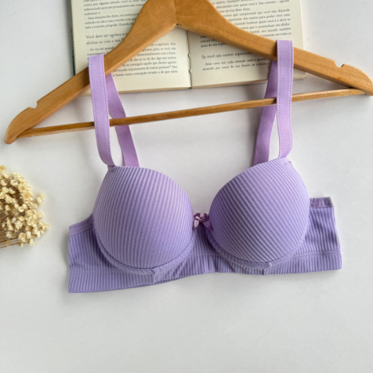 Sutiã Reforçado Duda Canelado com Bojo Aro de Metal e Alças Largas