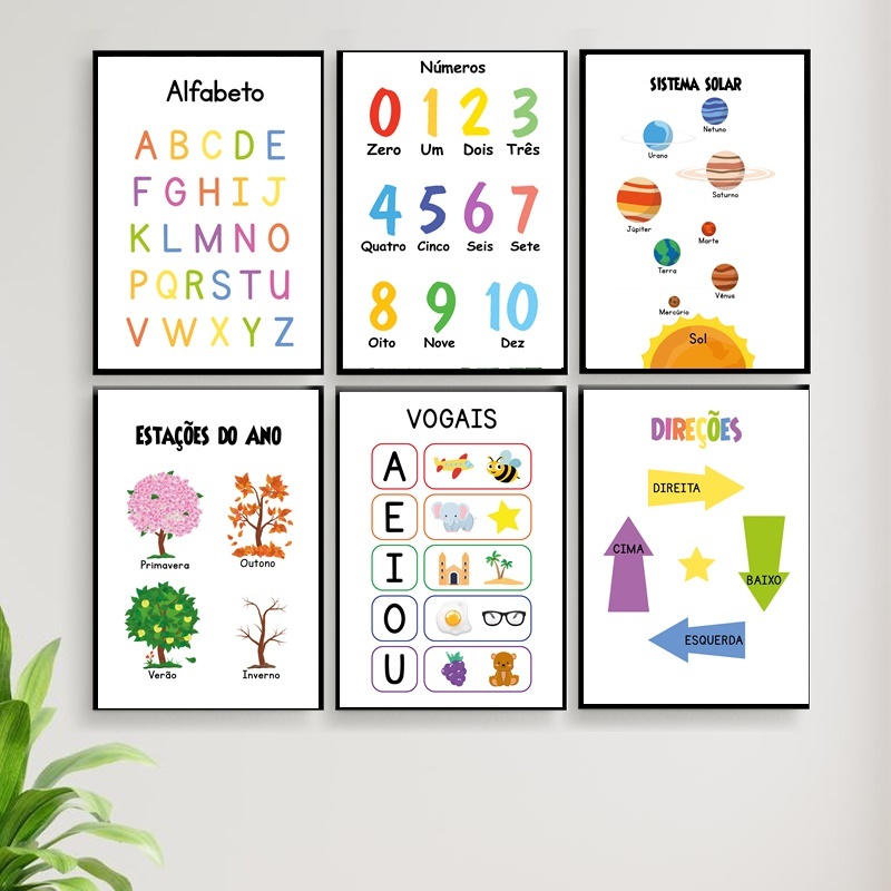 Kit 6 Quadros Pedagogicos Educativos Escola Brinquedoteca