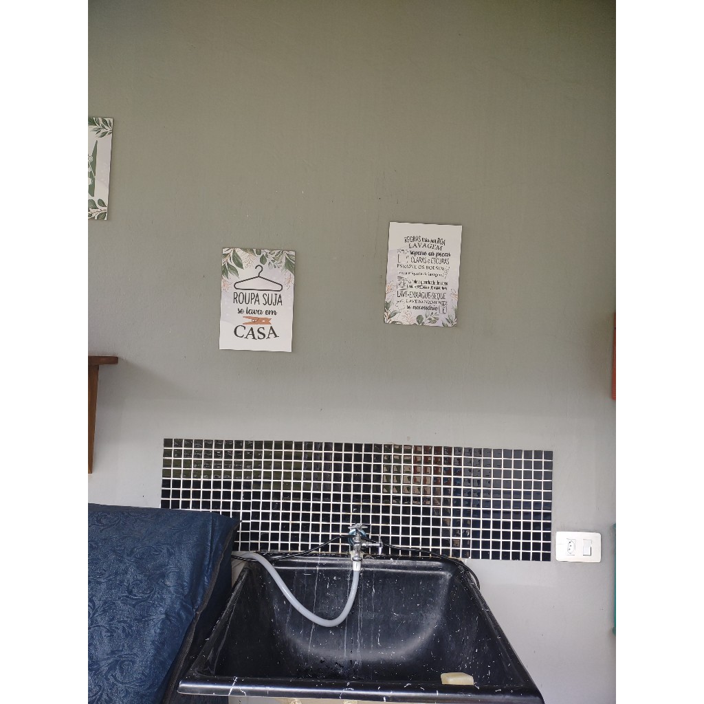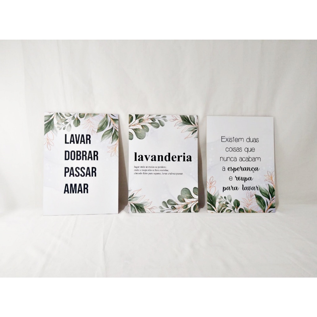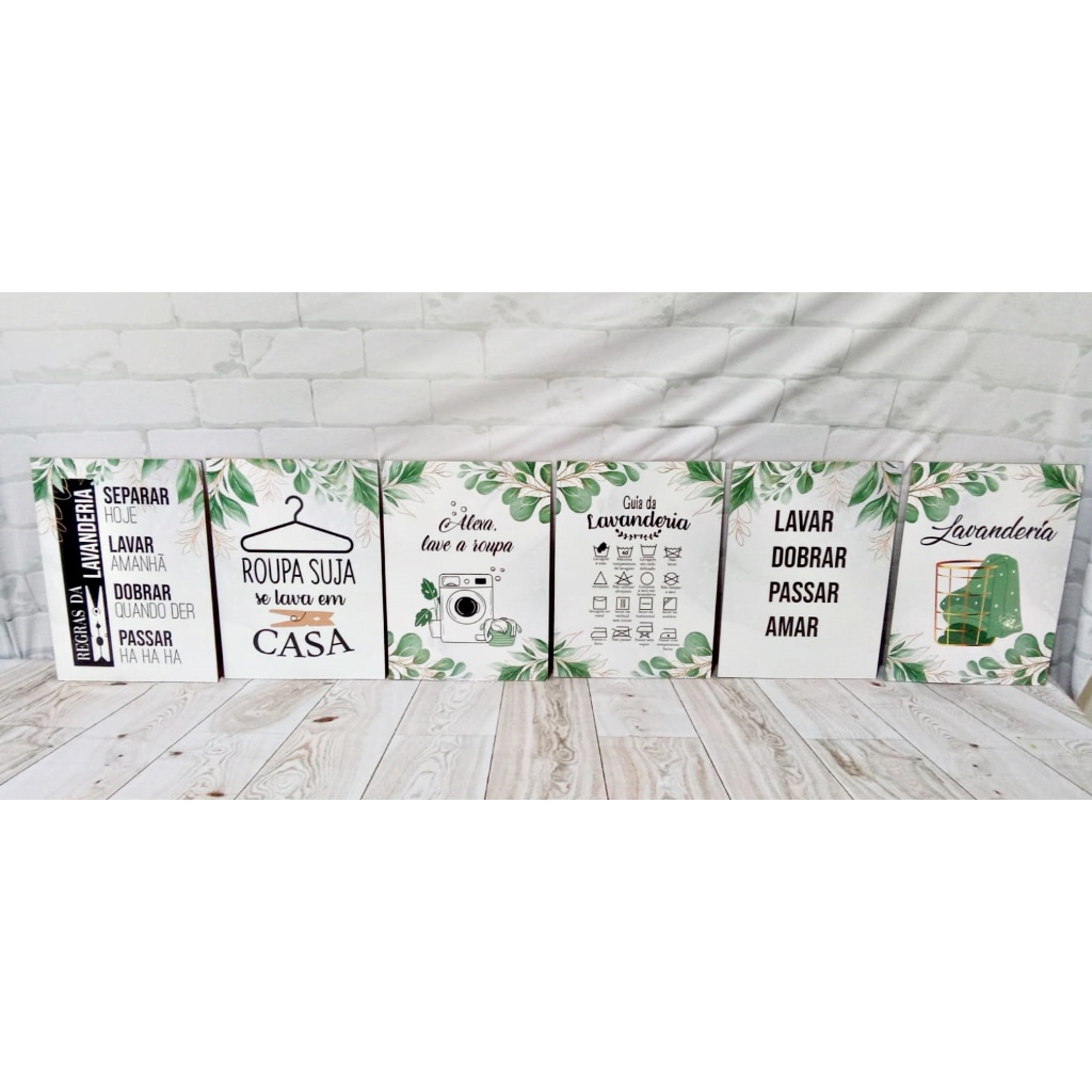 Quadros Lavanderia Lavar Passar Amar Folhas 8 Peças 20x28cm