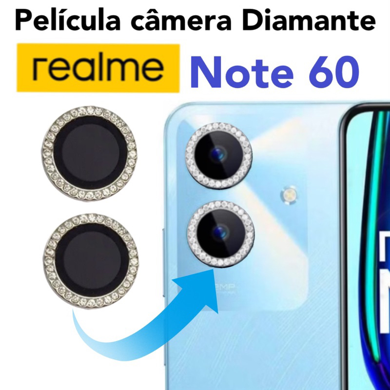 KIT completa (2 peças )Película de câmera Diamante Para Realme Note 60 protege lentes com Strass Brilhante Brilho