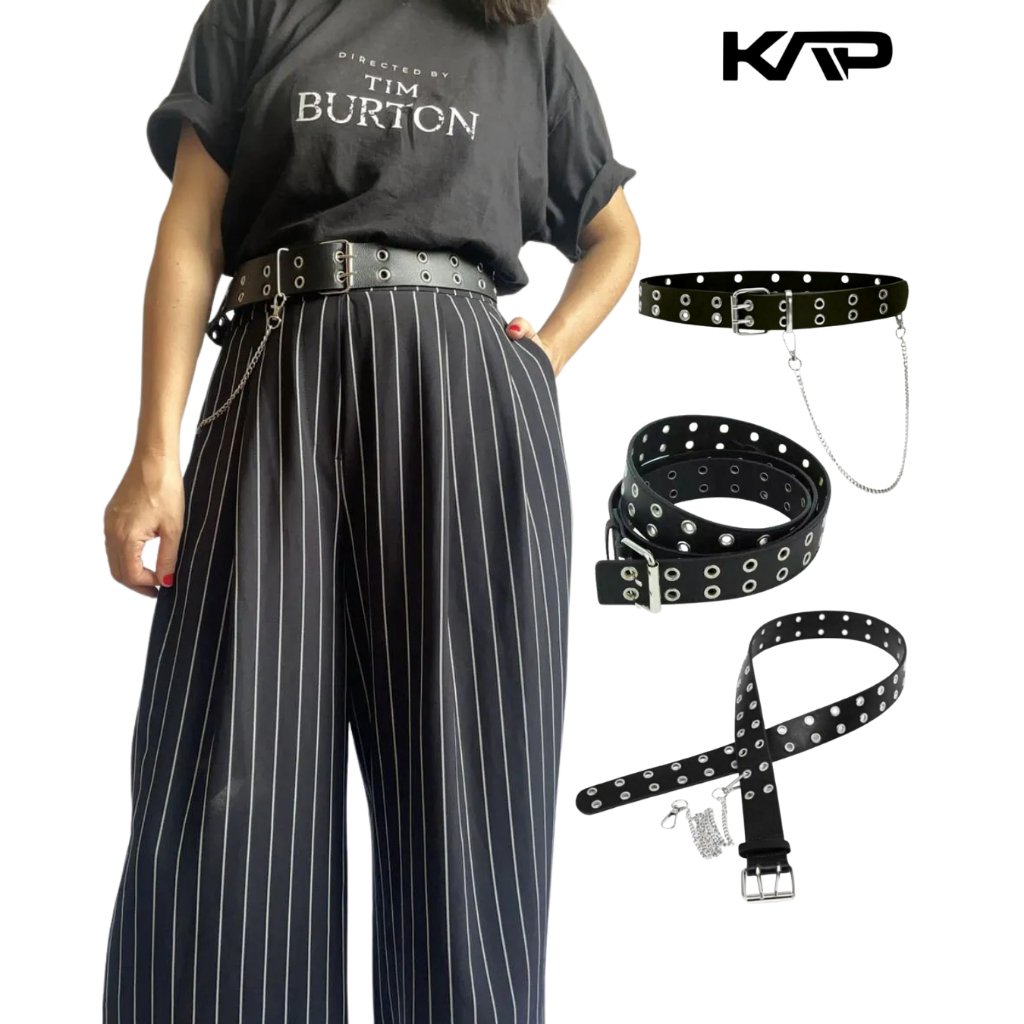 Cinto Punk rock ilhós duplo kpop rock cinto furadinho + corrente relateral