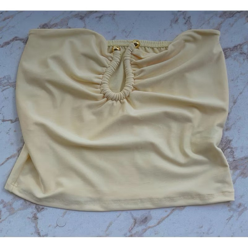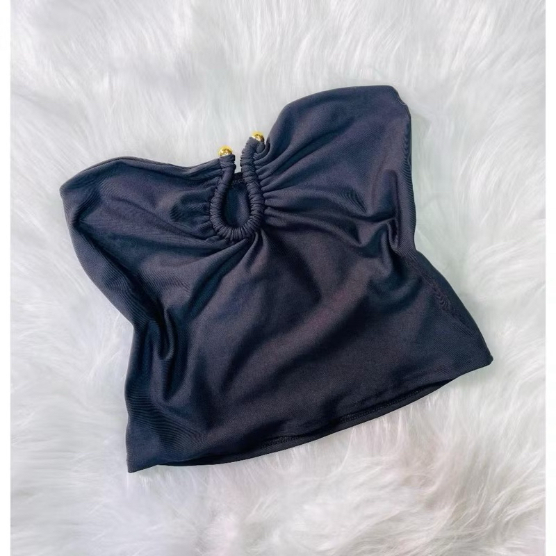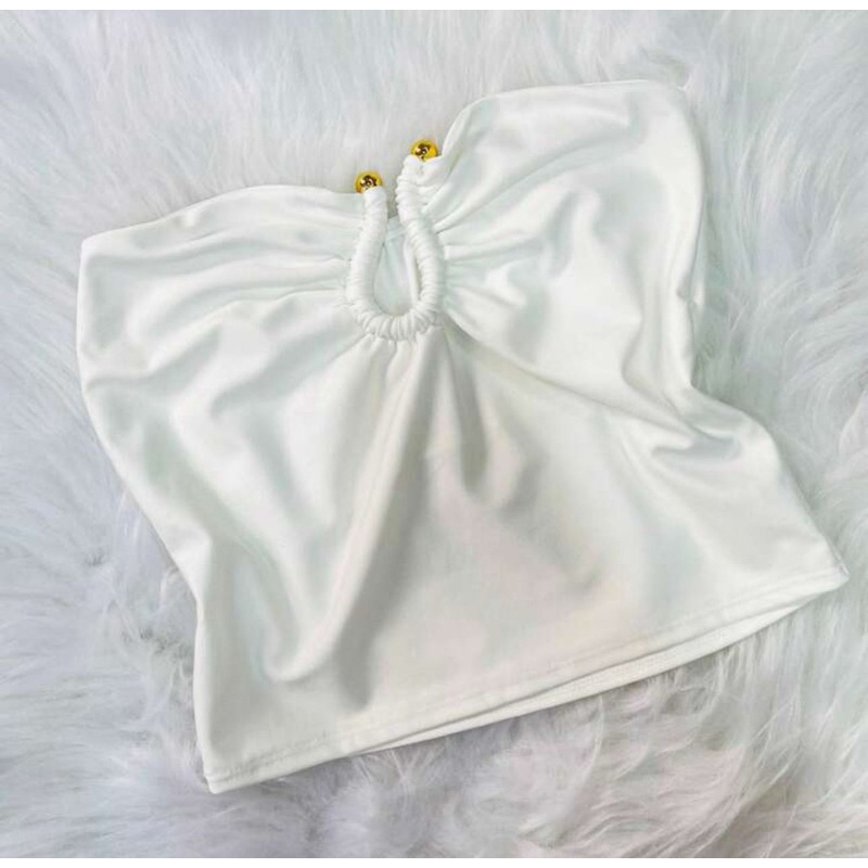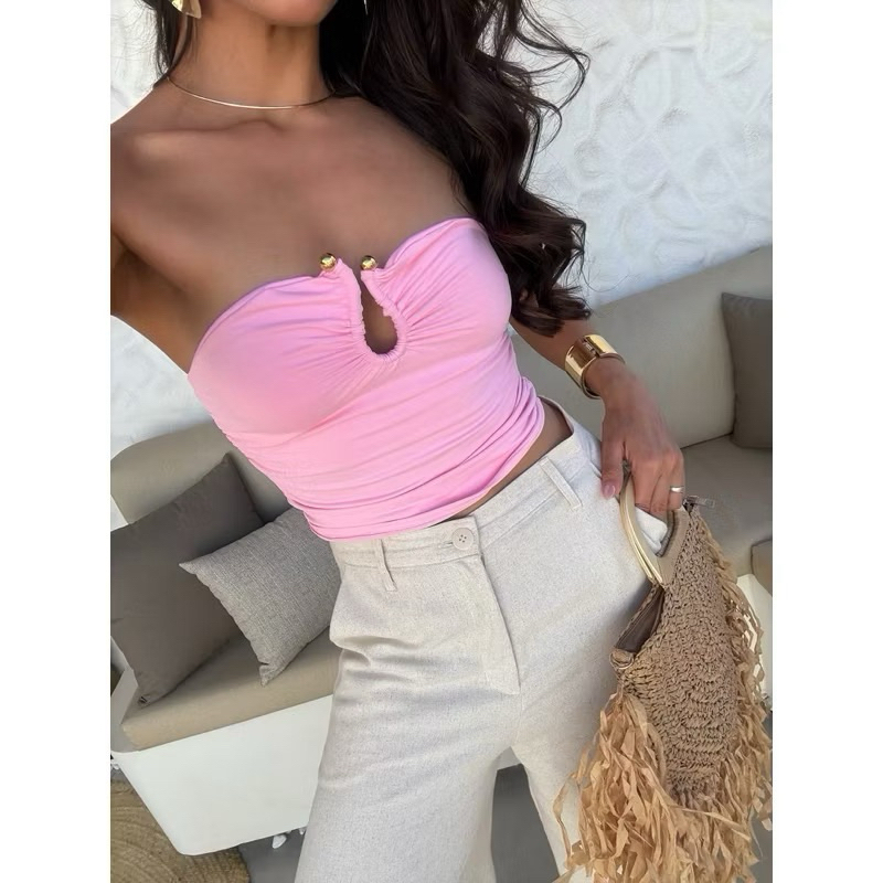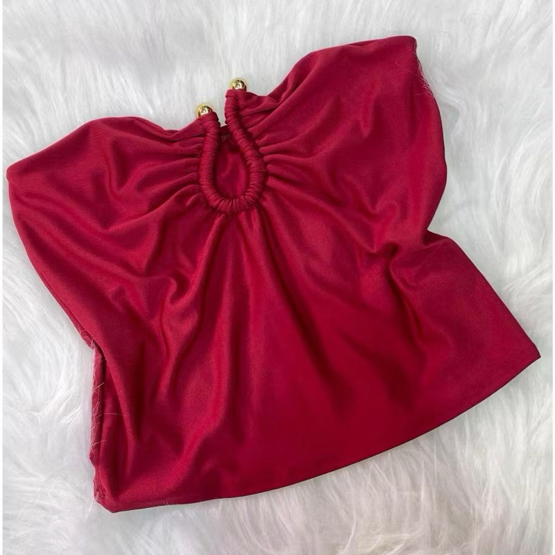 Cropped tomara que caia fivela na frente top faixa tube argola na frente perfeito natal ano novo blusinha argola