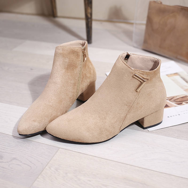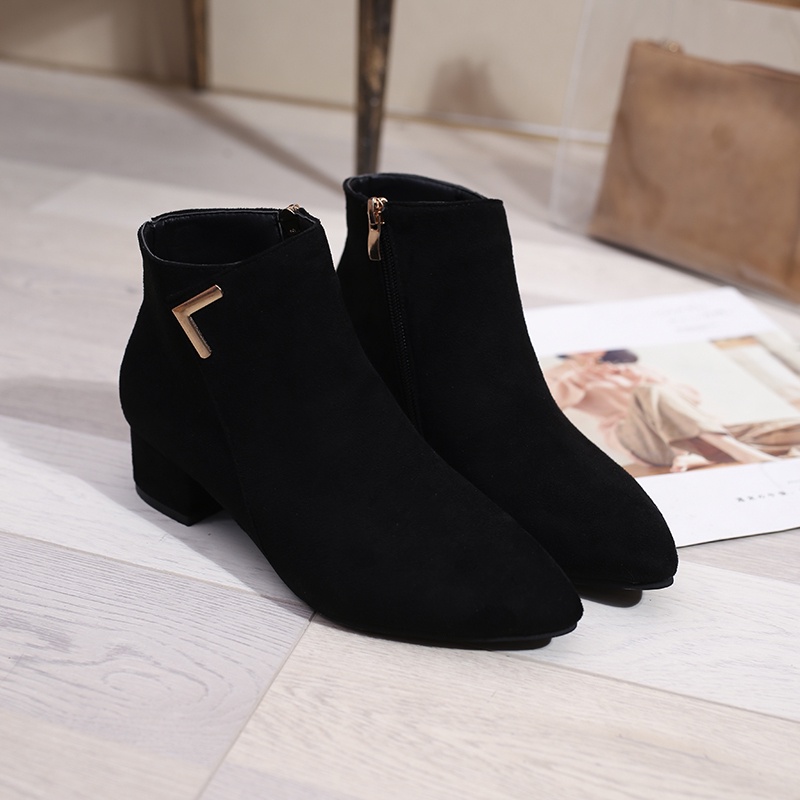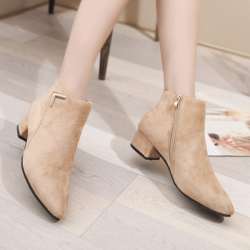 Saltos Altos Das Mulheres Botas Chelsea , De Moda Apontou Tornozelo Com Zíper (Altura 3 Cm 1.18 Polegadas , Camurça De Couro)
