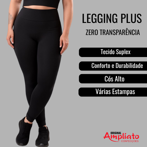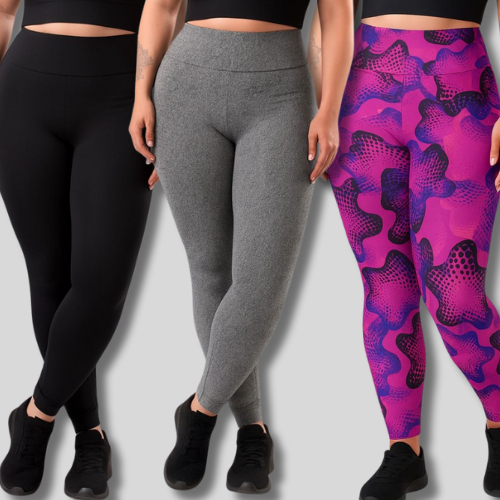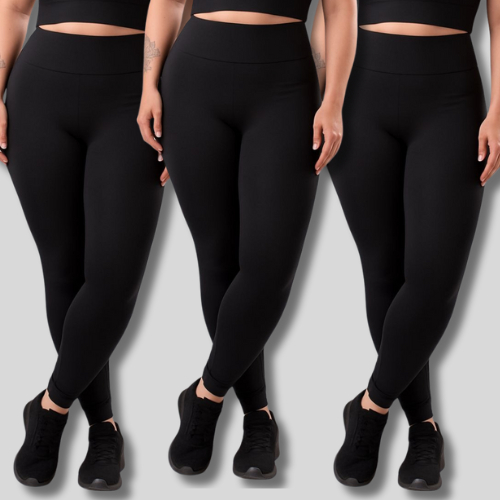KIT 3 Leggings PLUS SIZE Suplex Feminina – Não Transparente, Alta Compressão para Treino, Casual ou Pilates