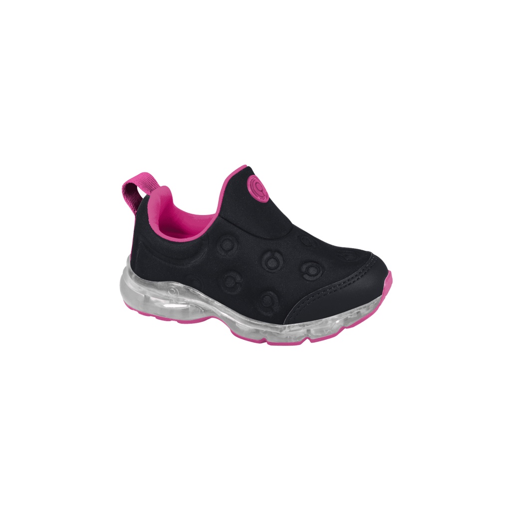 Tênis de Led Infantil Feminino Ortopé Power Light Calce Fácil Preto Pink