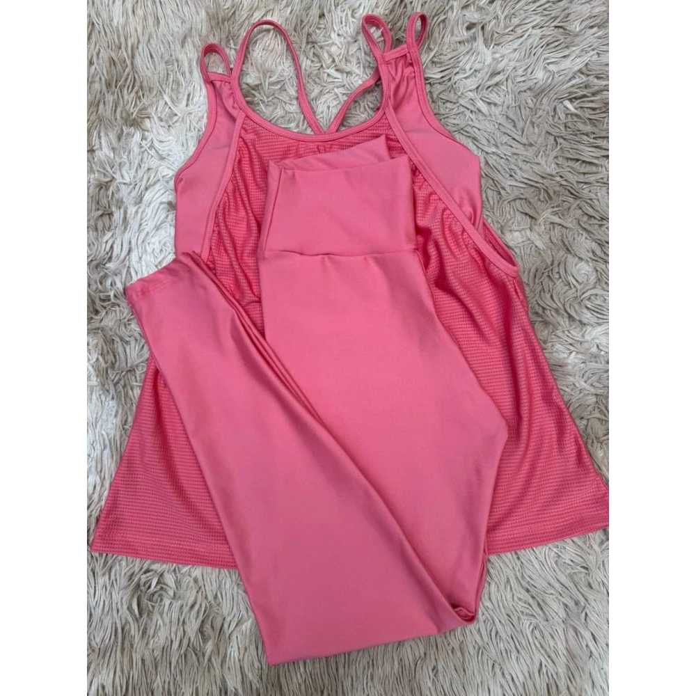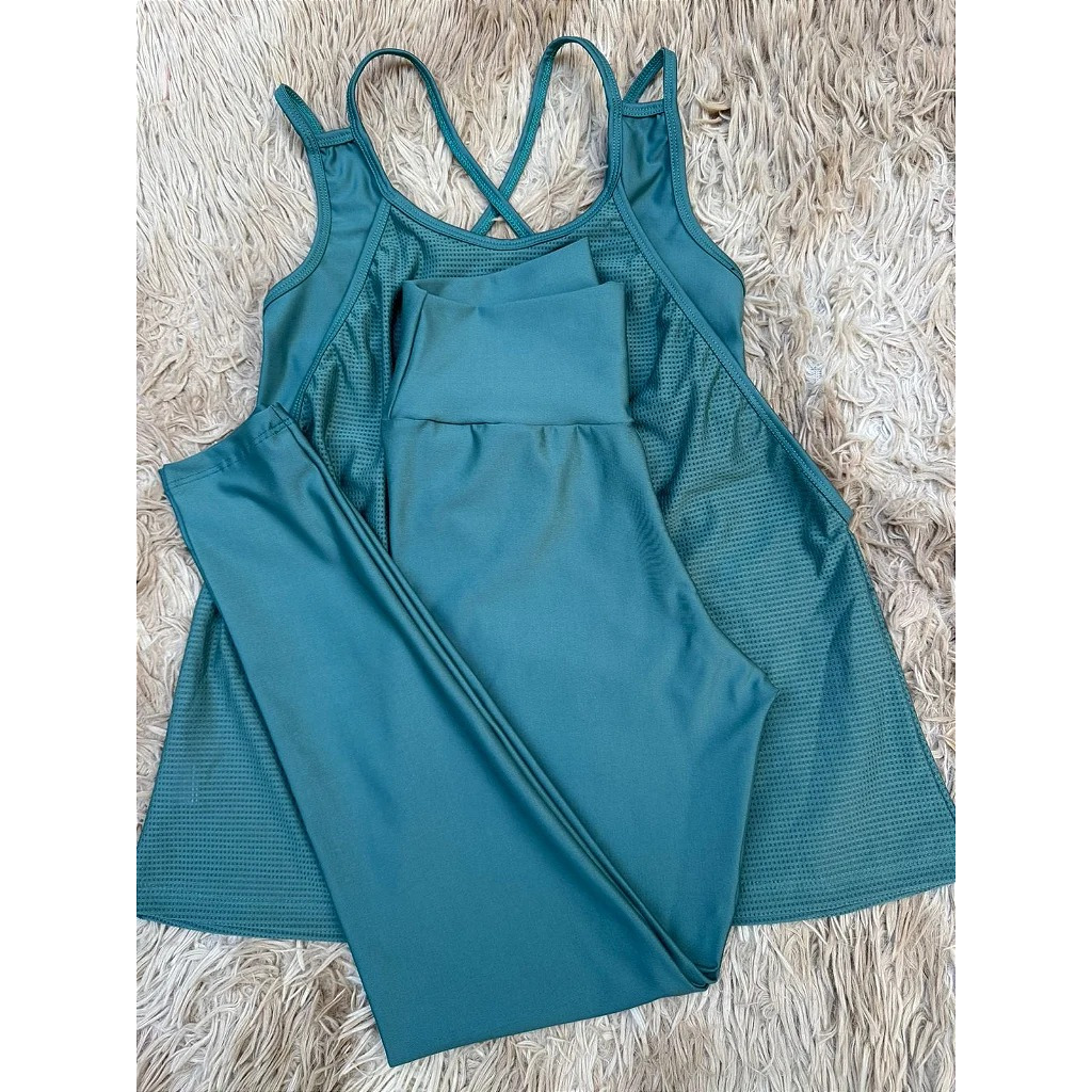 Conjunto trio moda fitness, legging, regata + top embutido, liso, academia, fitness, feminino