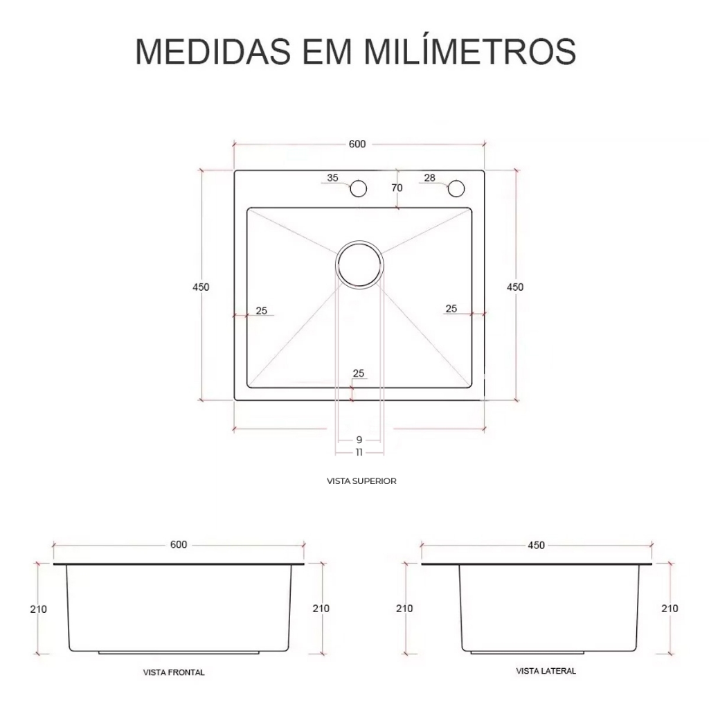 Cuba Pia Inox Preta Quadrada 60x45 Cozinha Gourmet com Acessórios Brinovar