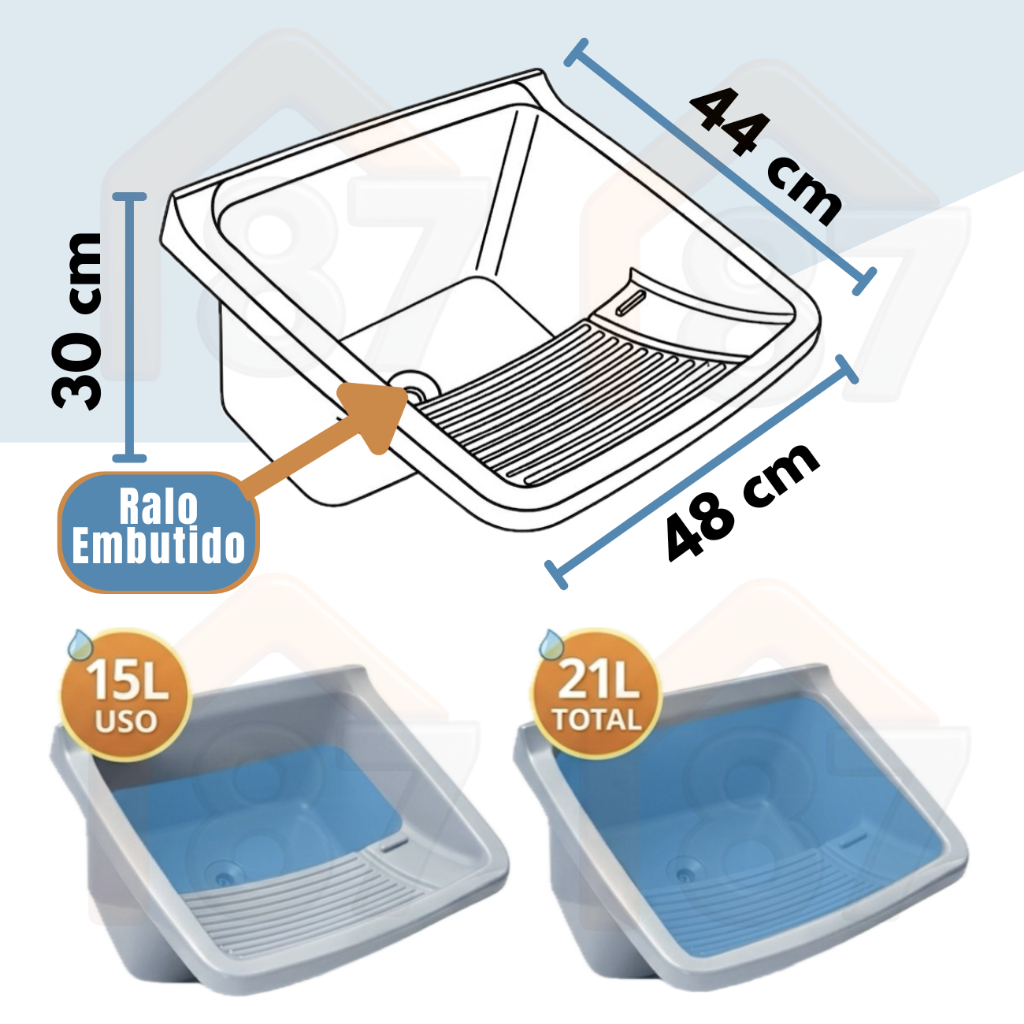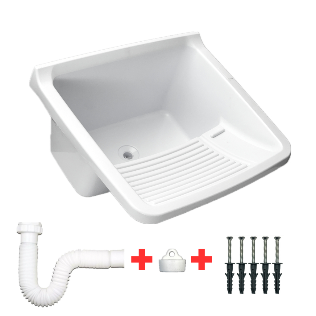 Tanque com Sifão Ralo e Kit de Instalação Tanquinho Pia Lavar Roupas Lavanderia Sifão