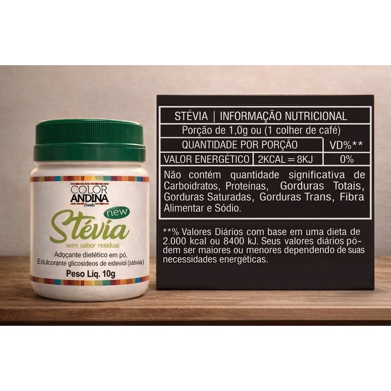 Adoçante Stévia Color Andina 10g - SEM SABOR RESIDUAL AMARGO
