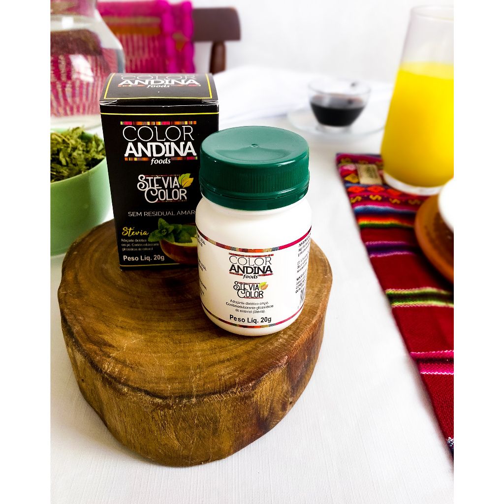 Adoçante Stévia 20g | Color Andina | 100% Natural | 2 Potes - SEM SABOR RESIDUAL AMARGO