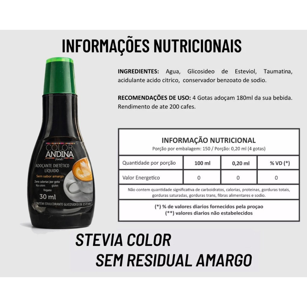Adoçante Líquido Stévia Color Andina 30ml - SEM SABOR AMARGO | SEM GLÚTEN - 100% Natural