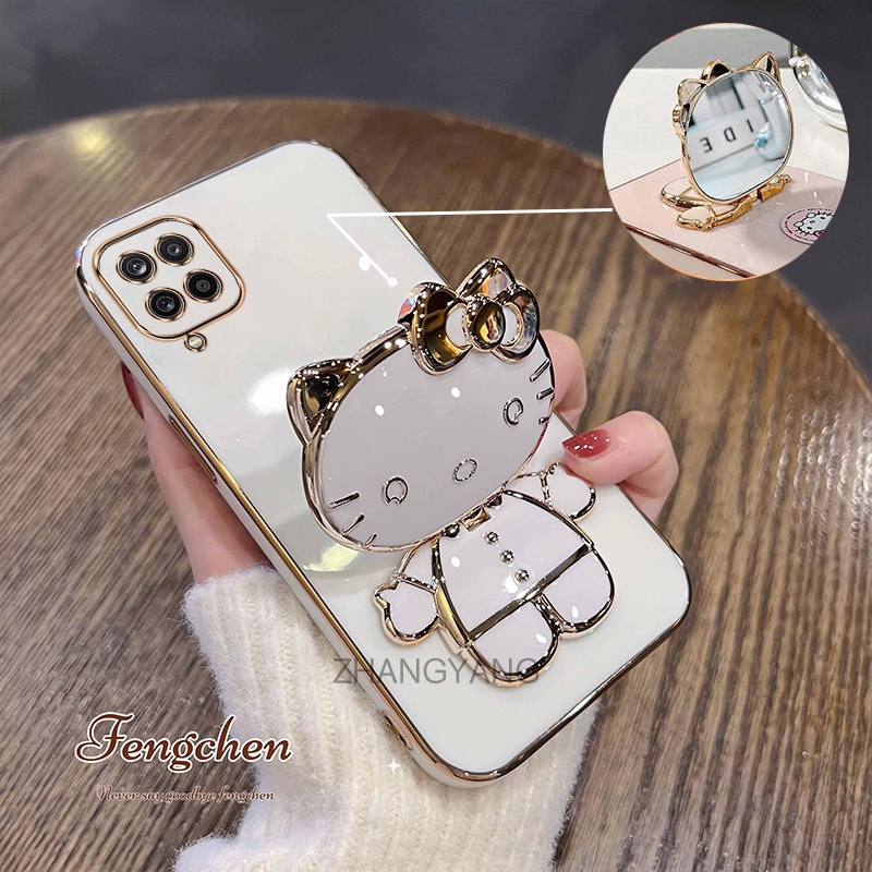 Caixa Samsung A12 A22 M12 M22 TPU Silicone Capa Macia 3D Cute Cat Bracket Phone Case Anti-Gotas Câmera Cobertura Total