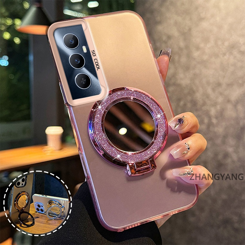 Capa Para realme C65 Silicone Fosco TPU De Telefone Estética Espelho Função Suporte Novo design anti Queda Caso Macio
