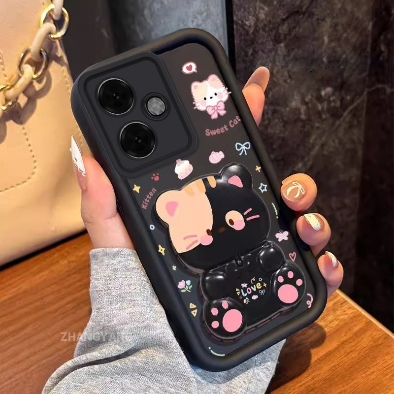 Capa Para OPPO A5 Pro 5G Estética Urso Rotativo Suporte Novo design De Telefone À Prova De Choque silicone TPU Casca Mac