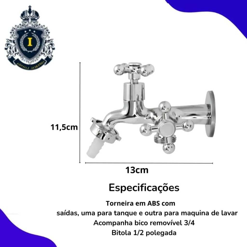 Torneira Tanque Maquina Lavar 2 Saídas Abs Cromado 1/4v
