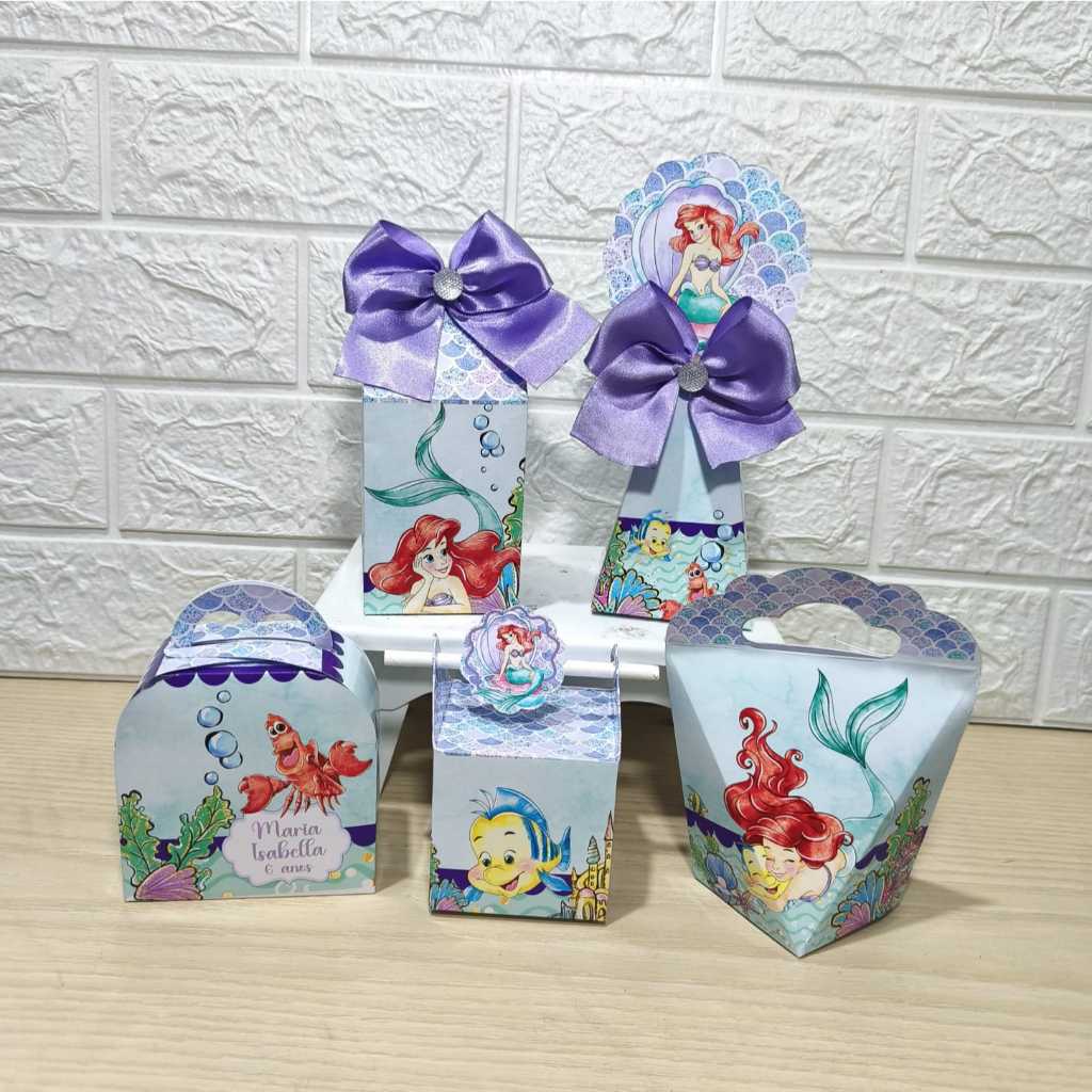 Kit Personalizados caixinhas PEQUENA SEREIA ARIEL AQUARELA Lembrancinha Aniversário-Festa PEGUE E MONTE