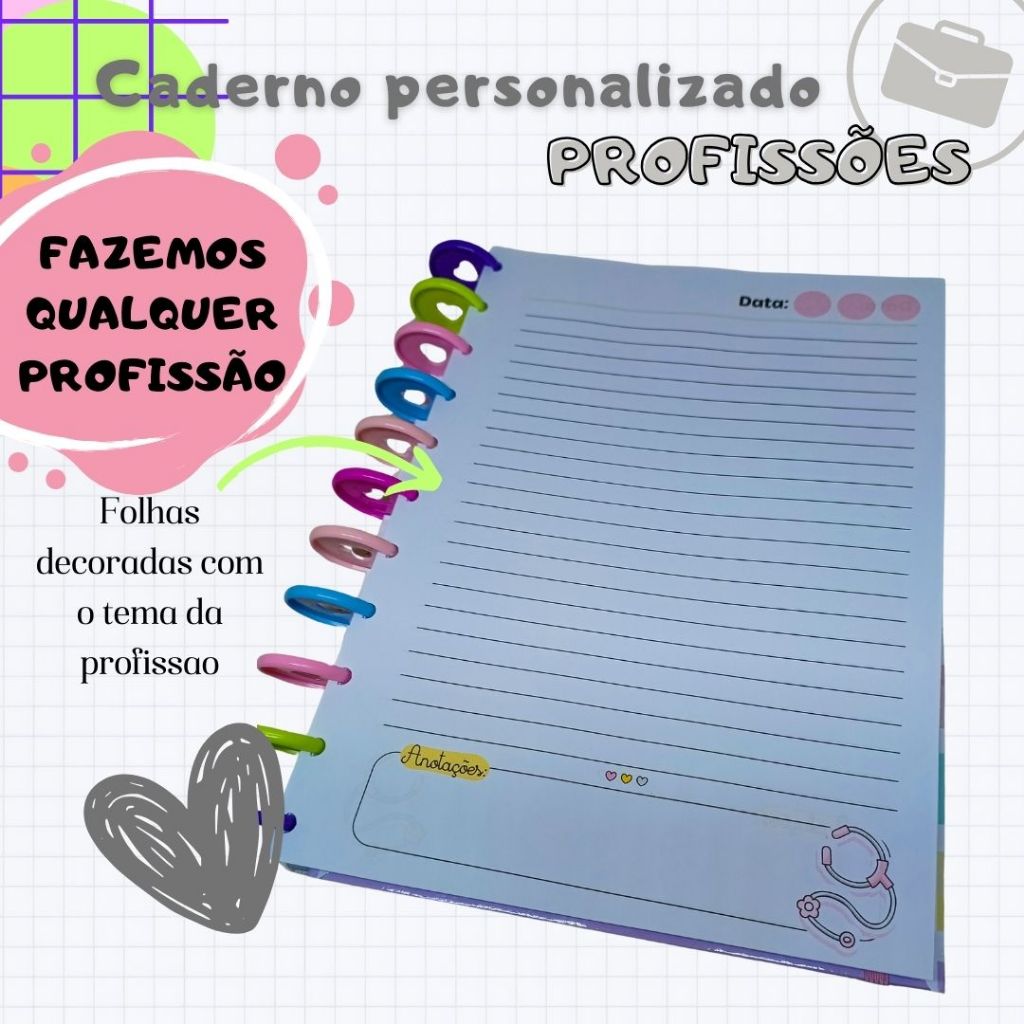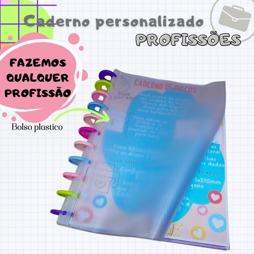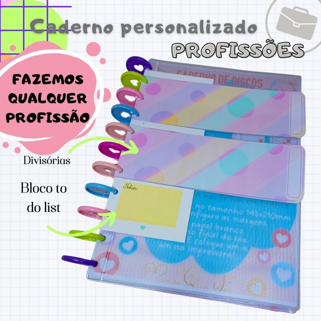 Caderno de discos profissão 3 tamanhos fazemos qualquer profissão