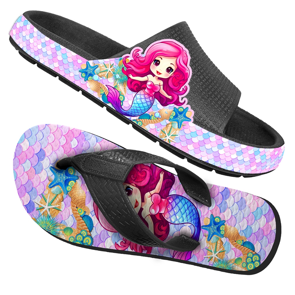 KIT Chinelo Nuvem + Chinelo Borracha Papete Infantil Menina Confortável Desenhos estampas Personagem
