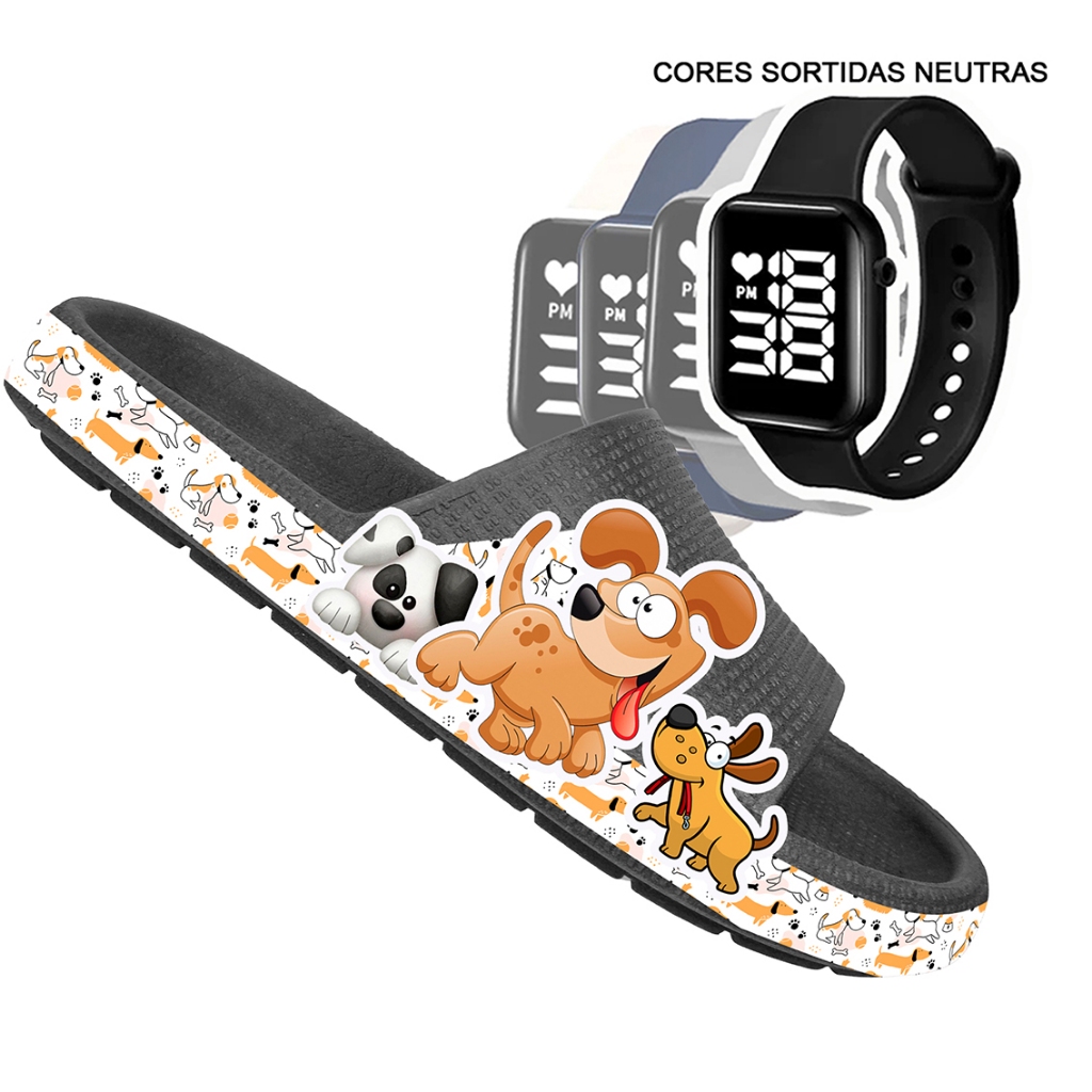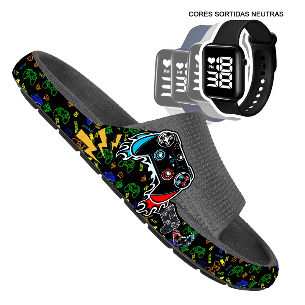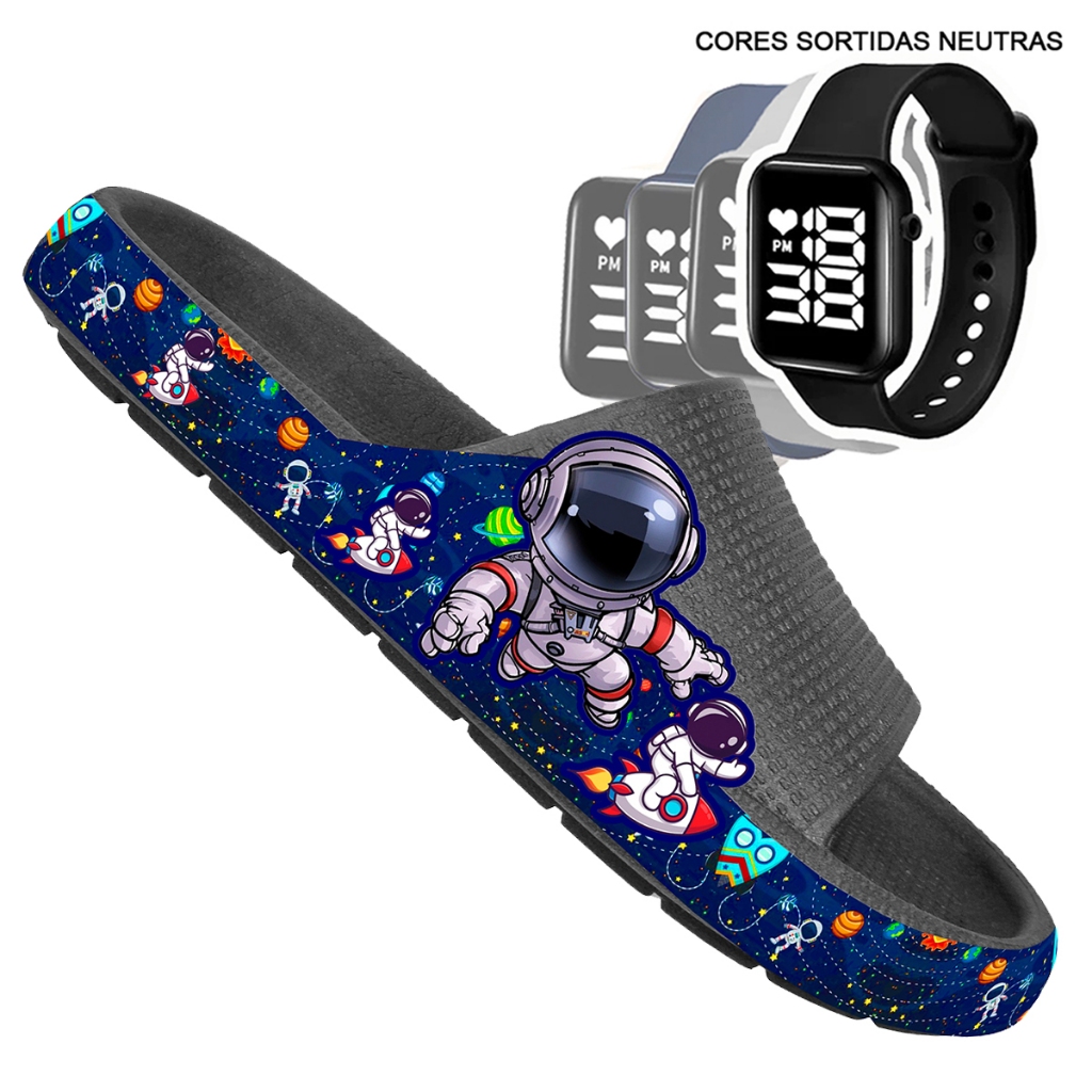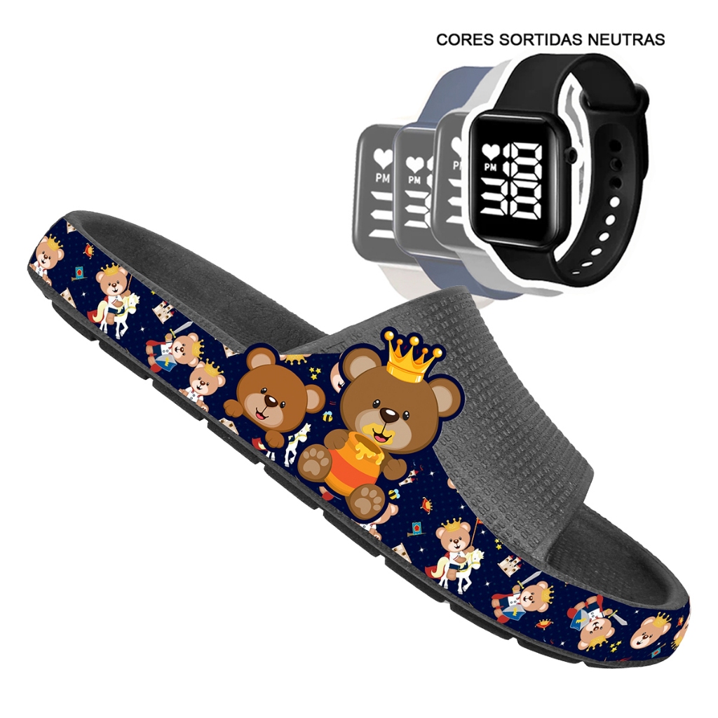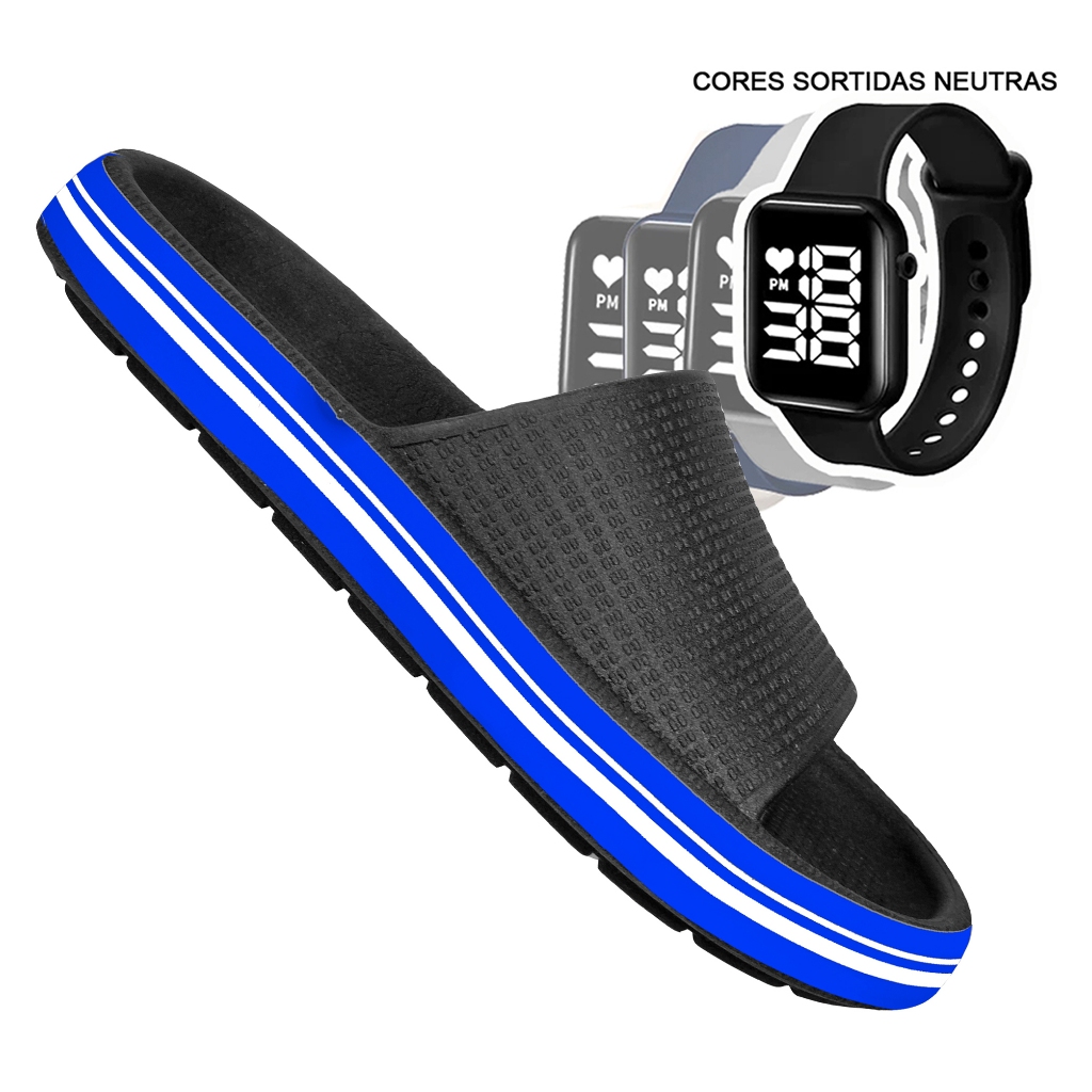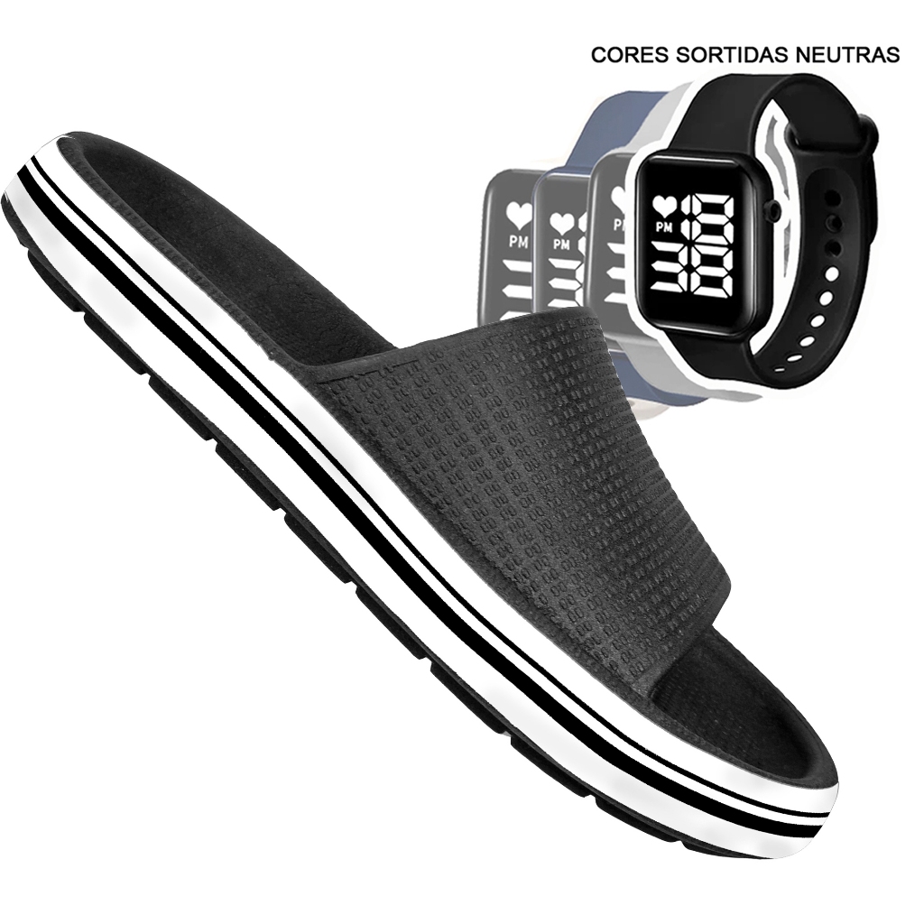 KIT Chinelo Nuvem Adulto Masculino Papete Sandália Confortável Leve Desenhos + RELÓGIO