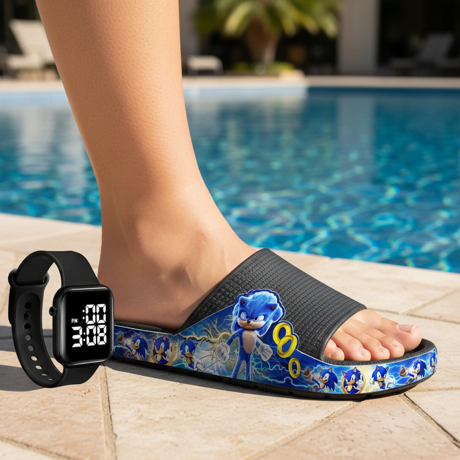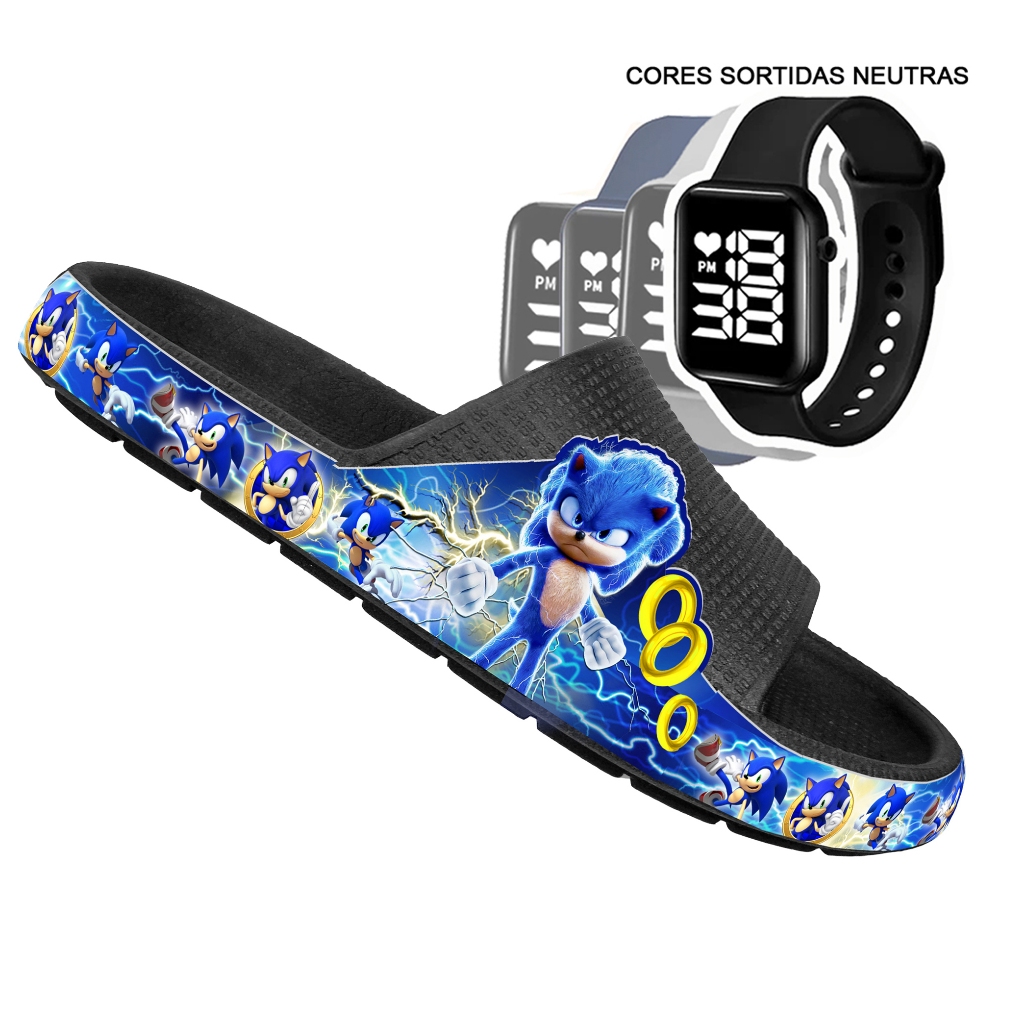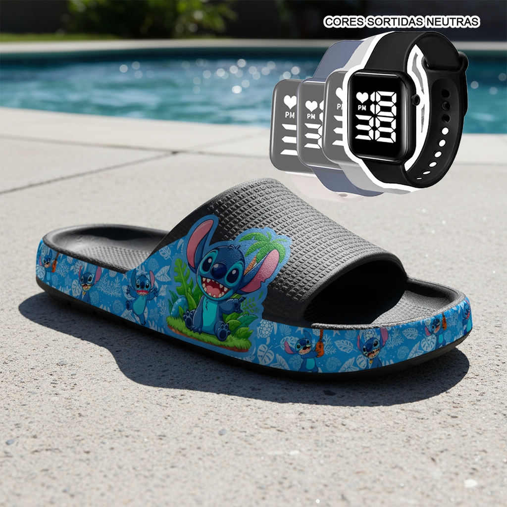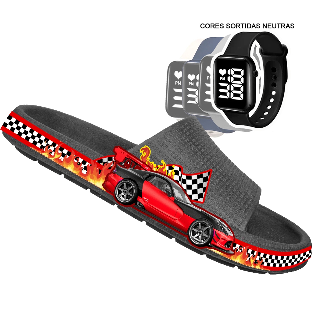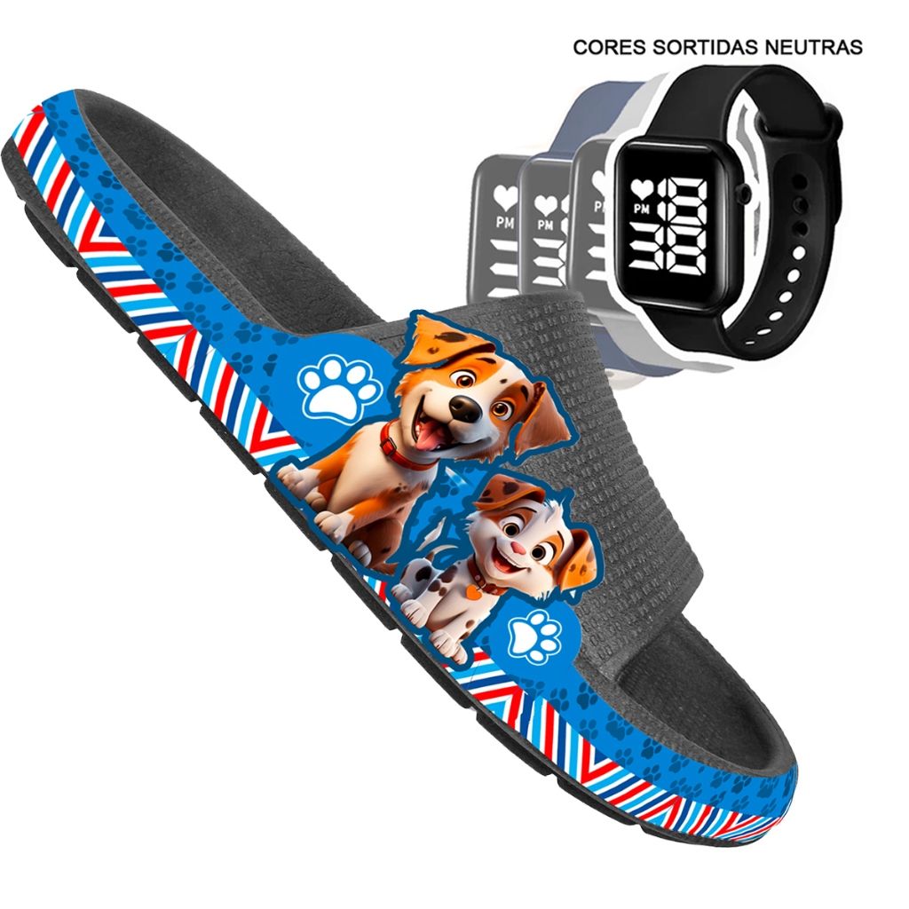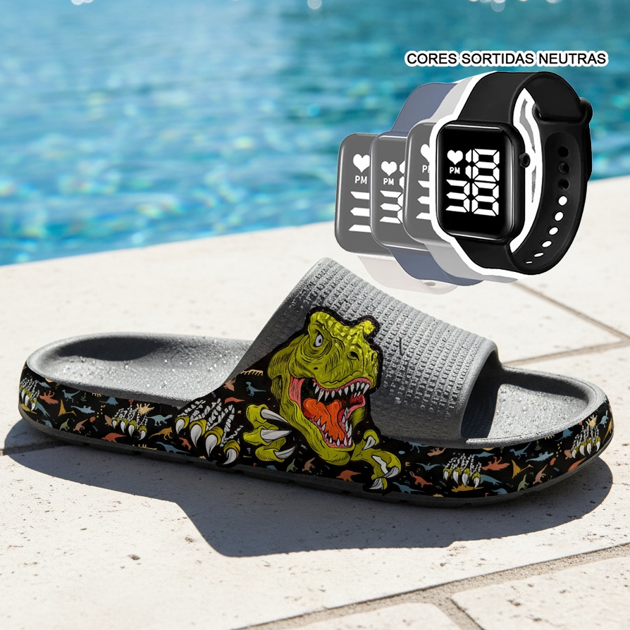 KIT Chinelo Nuvem Adulto Masculino Papete Sandália Confortável Leve Desenhos + RELÓGIO
