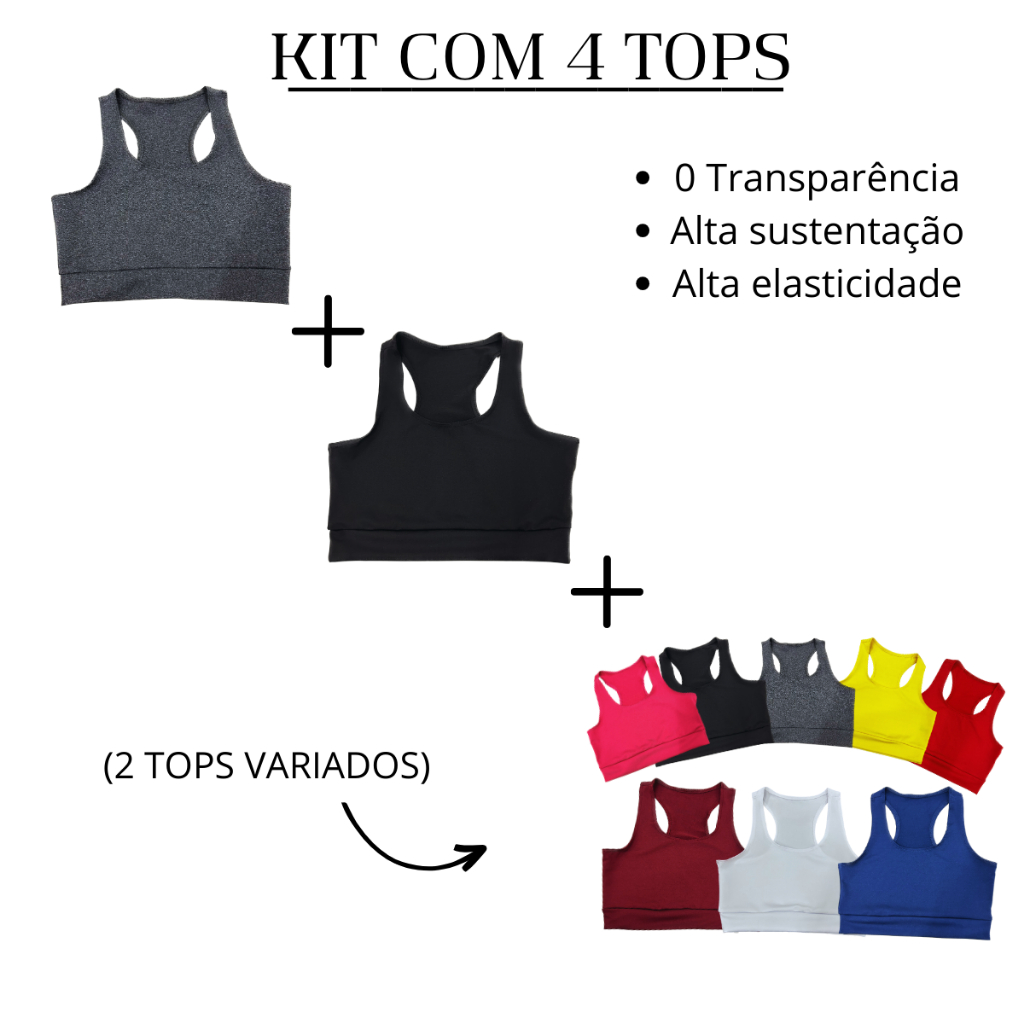 KIT 4 Top Nadador Suplex Liso Academia Fitness Treino Roupas Femininas