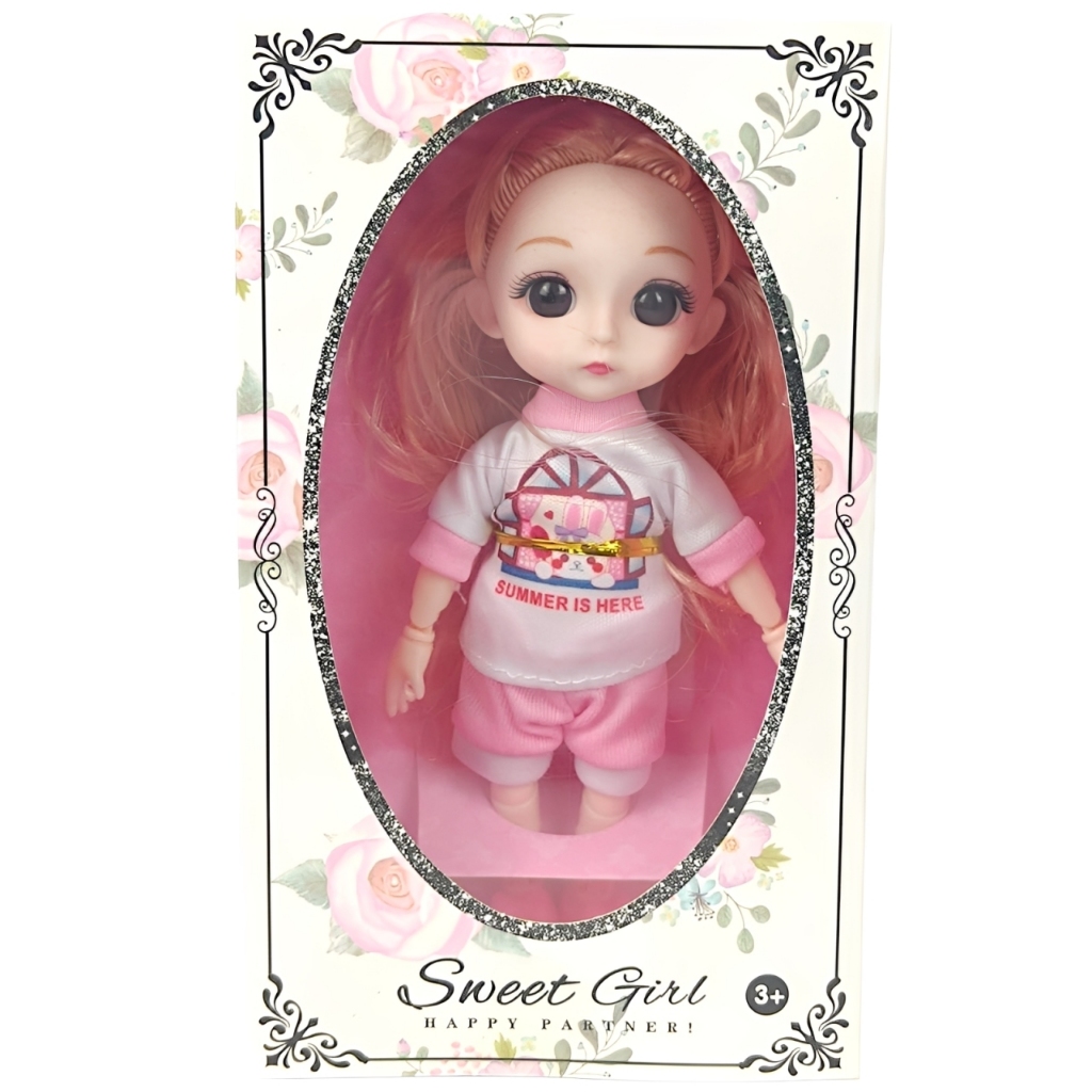 Boneca Sweet Girl 18cm com Roupa Casual Rosa - Toys Import J24327