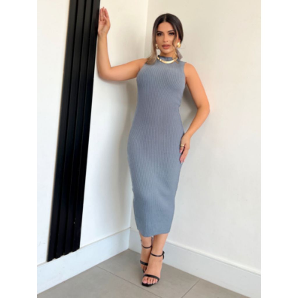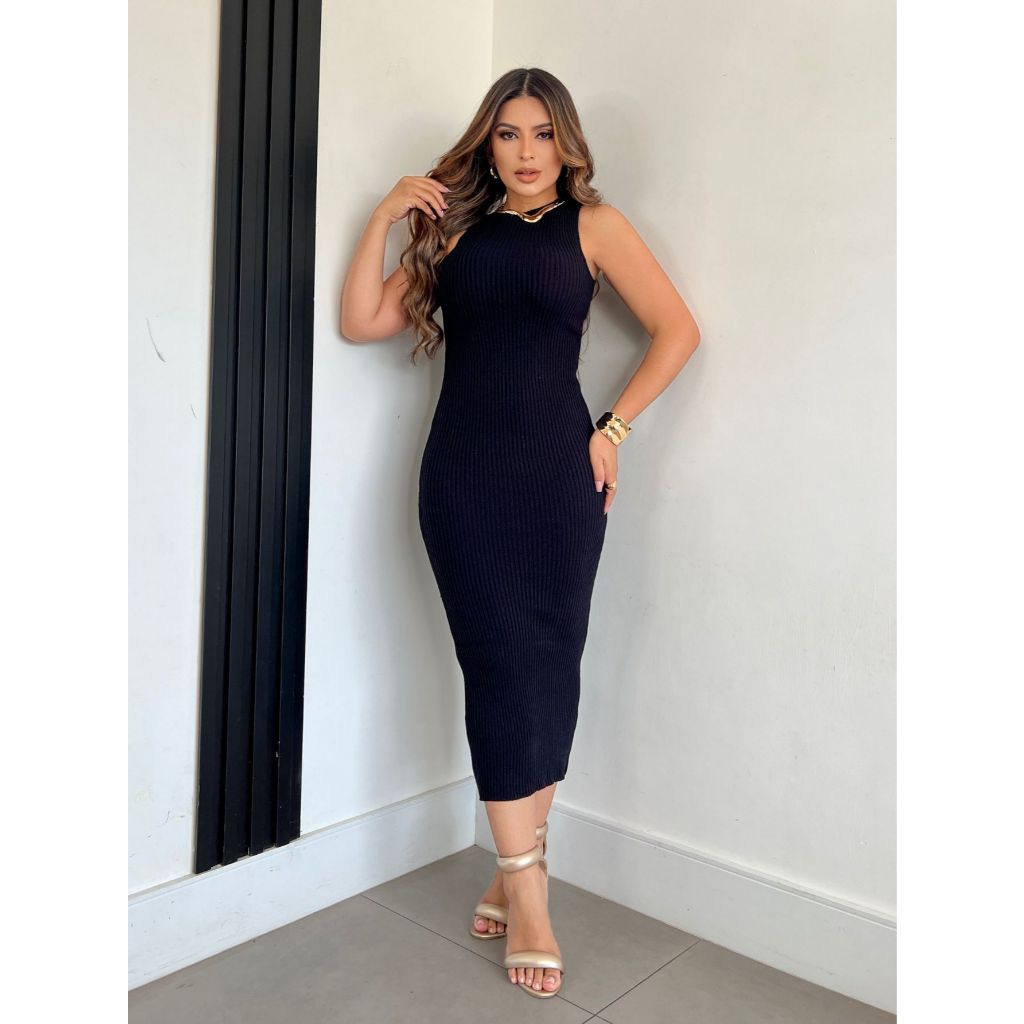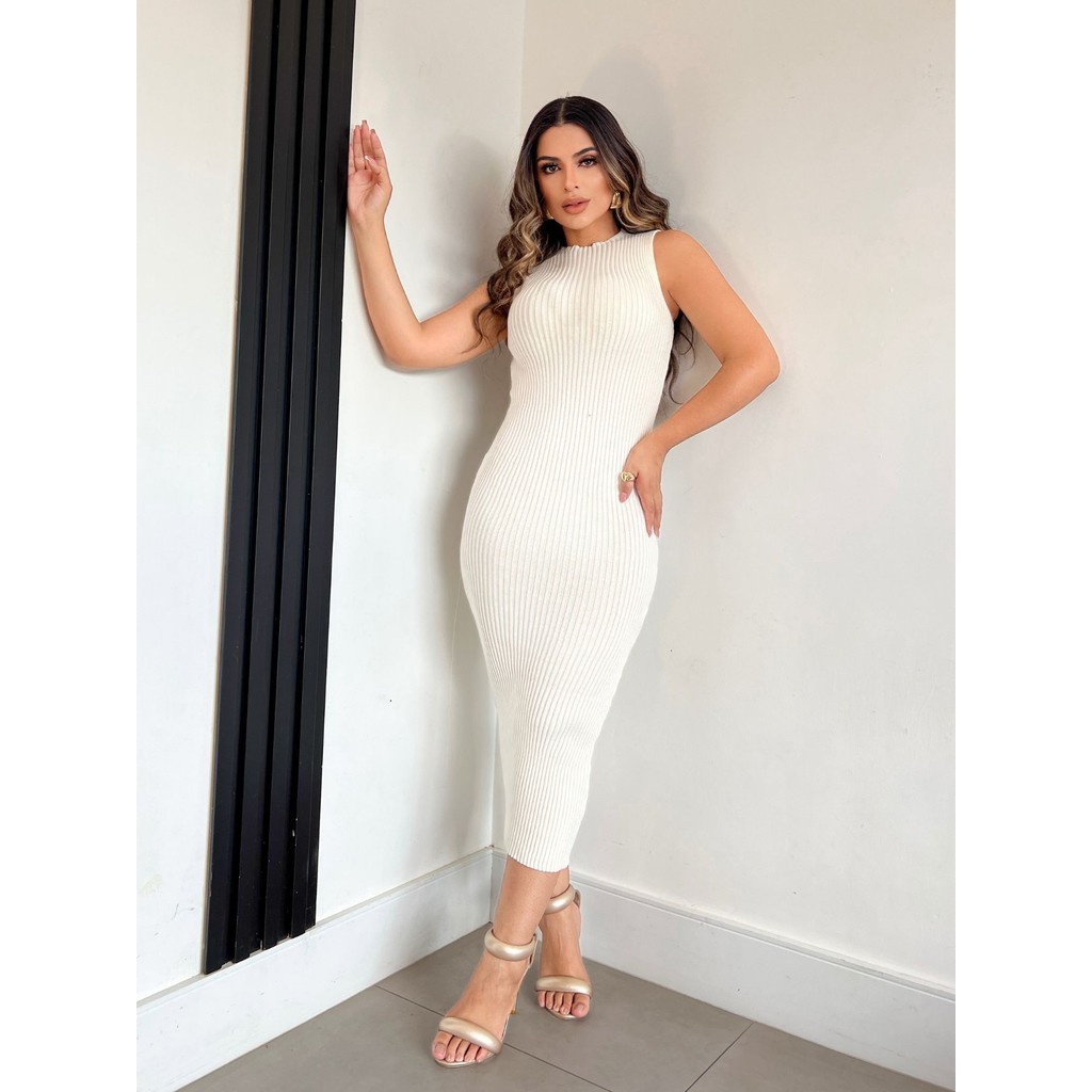 Vestido Midi de Tricot Modal – Modelagem Elegante – Feminino Sem Manga – Caimento Premium