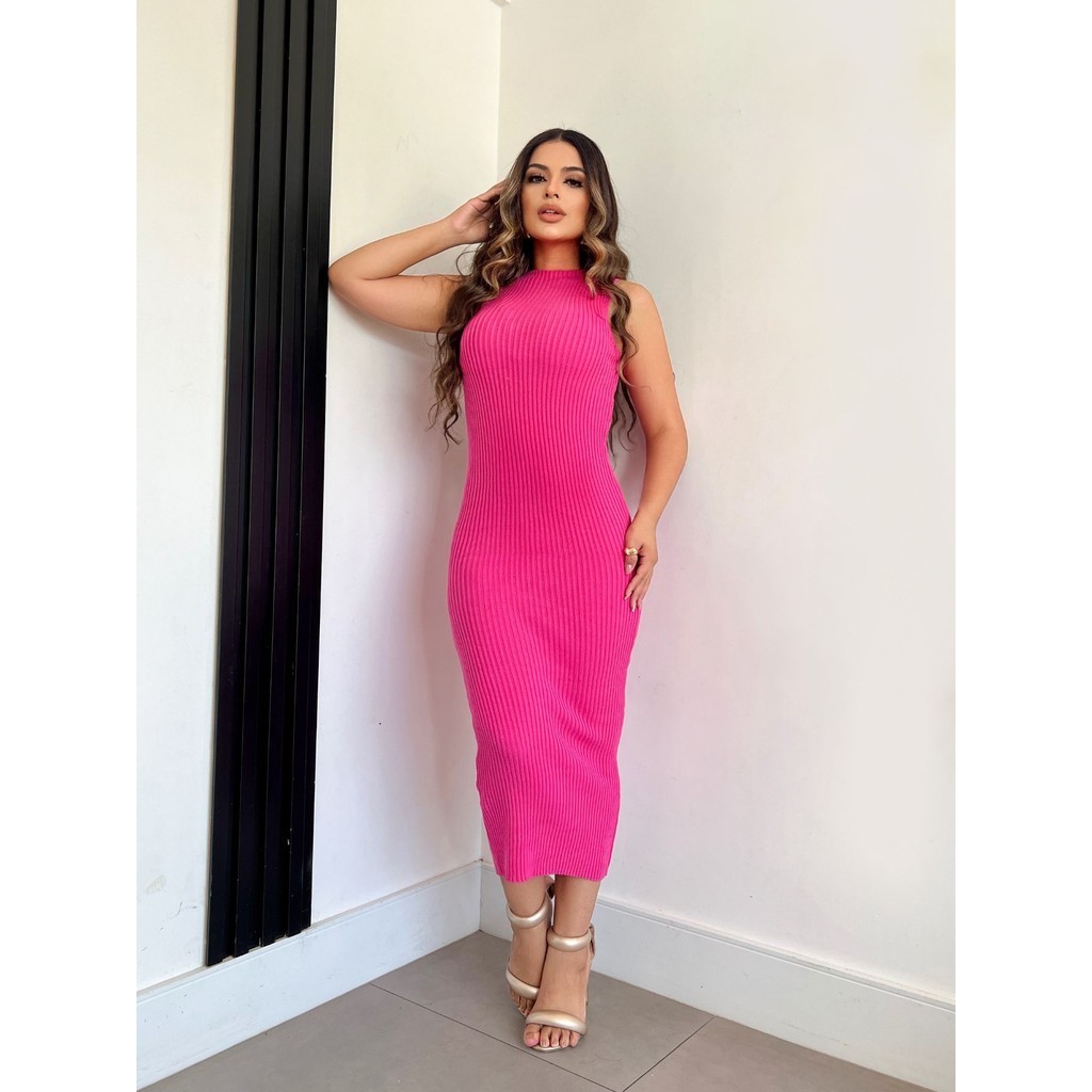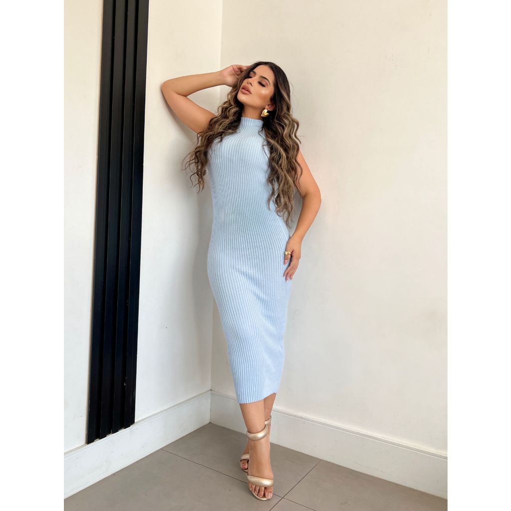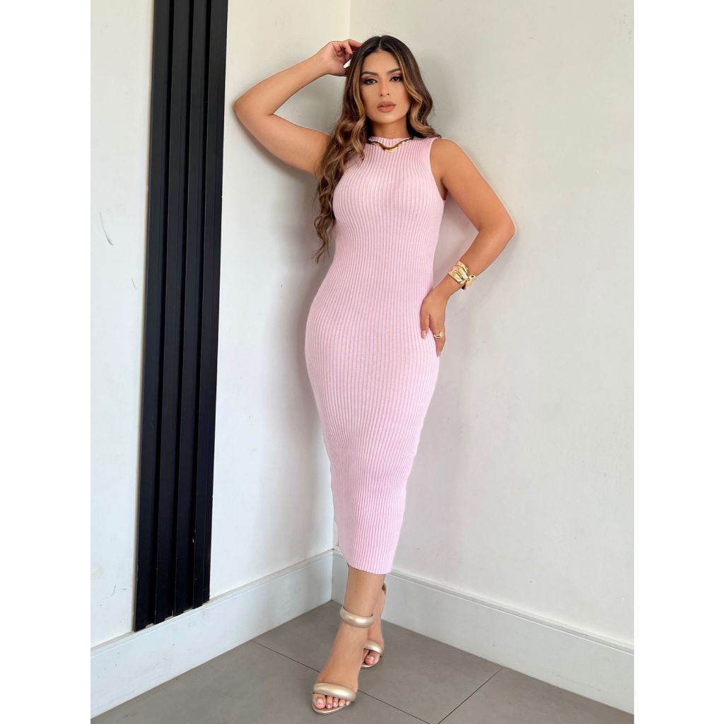 Vestido Midi de Tricot Modal – Modelagem Elegante – Feminino Sem Manga – Caimento Premium