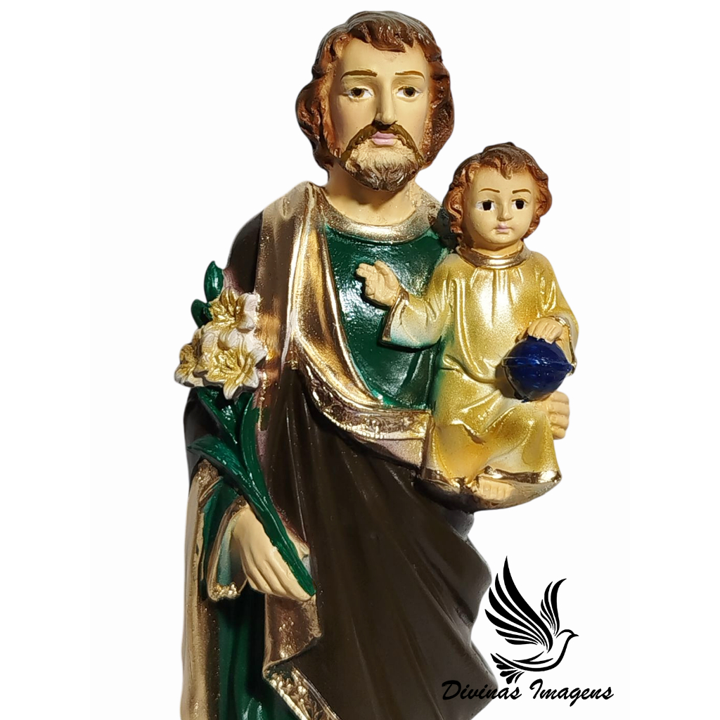 Imagem São José 20cm Gesso Premium Pintado a Mão Toques Artistícos Arte Sacra