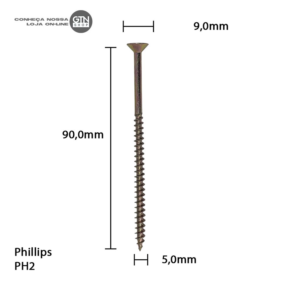 Parafuso Chipboard Phillips Stein 5.0x90mm Caixa 200 Peças Madeira Drywall