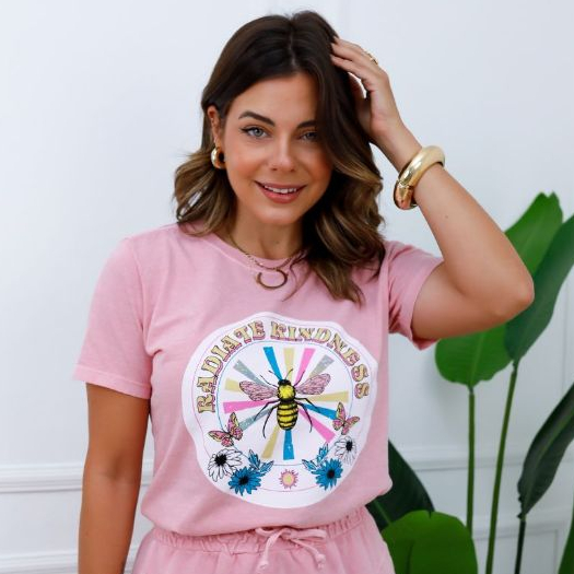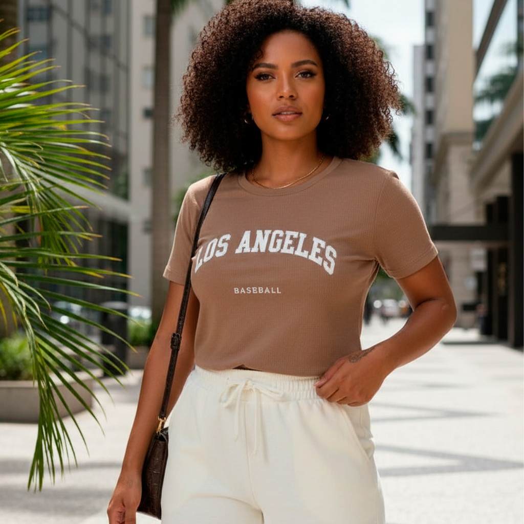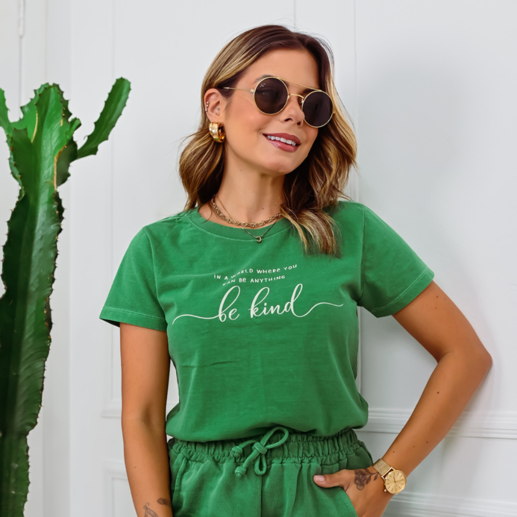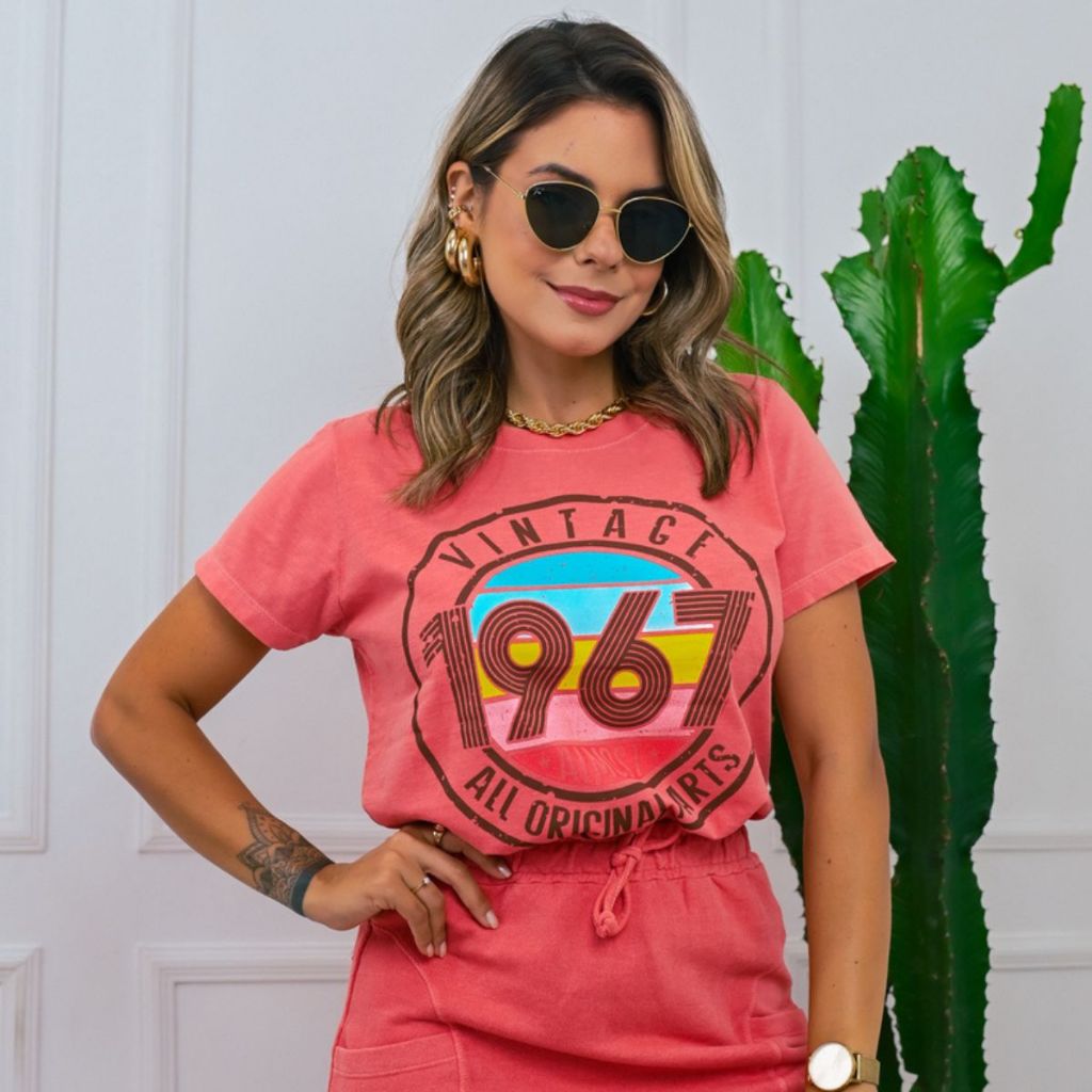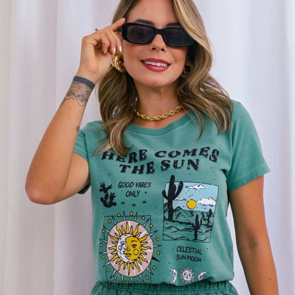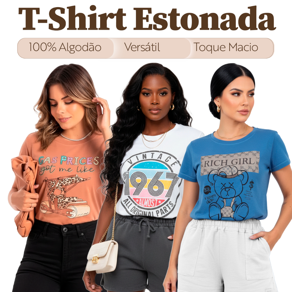 Blusa T-shirt Feminina 100% Algodão ESTONADA Manga Curta Gola Redonda - Moda Verão - L5