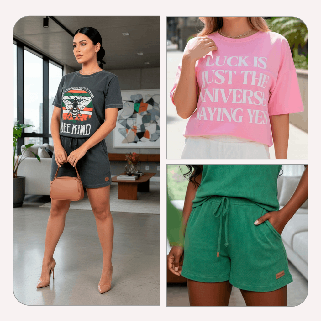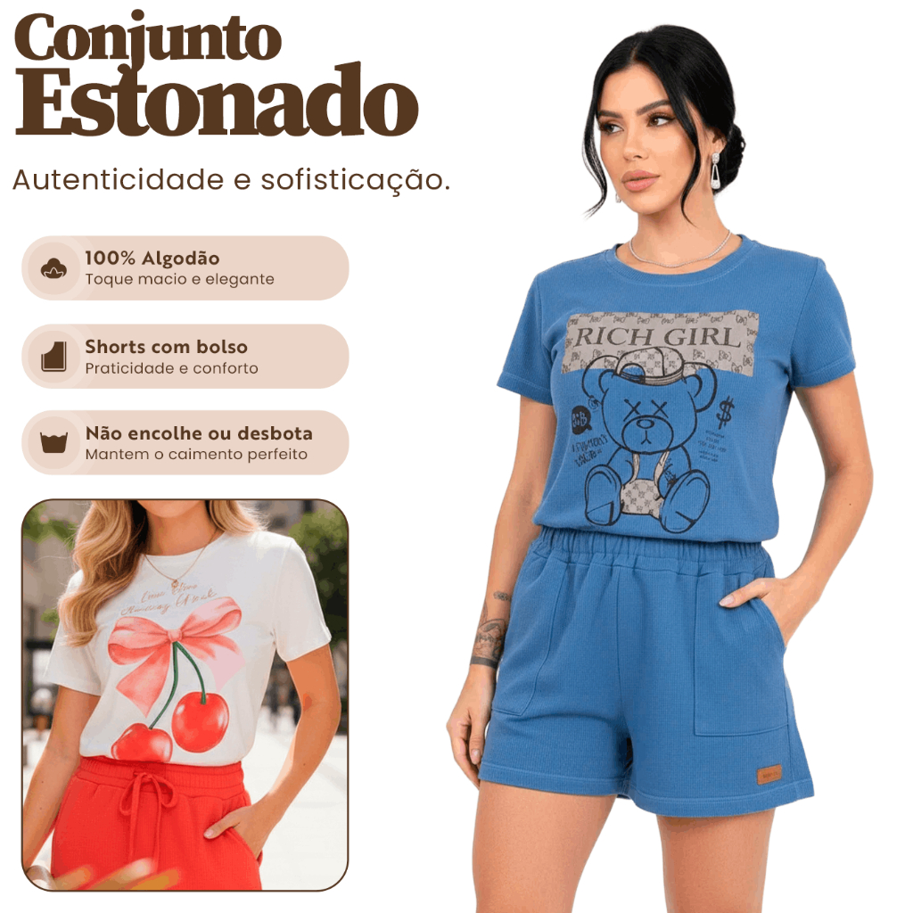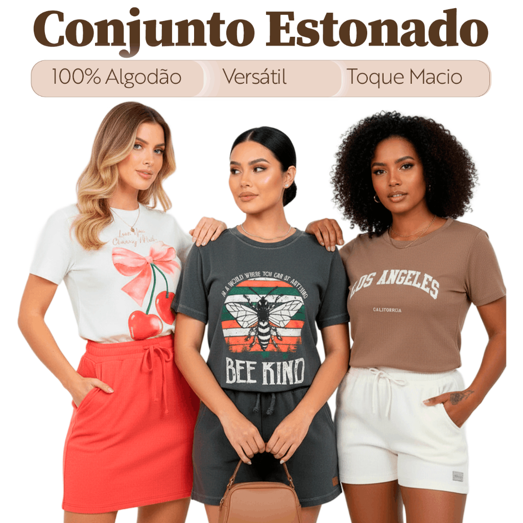 Conjunto Estonado Feminino Verão com Shorts e T-tshirt - L8