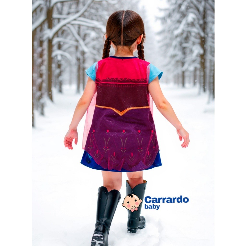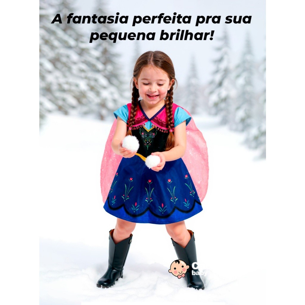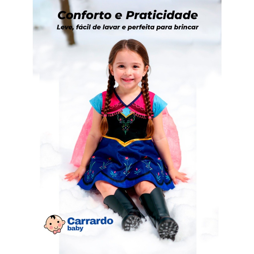 Fantasia Vestido Infantil Menina Anna Princesa Com Capa Longa Premium Festa Aniversário Halloween