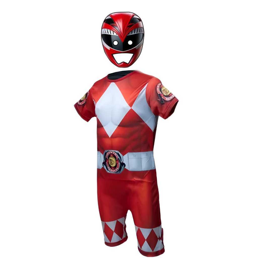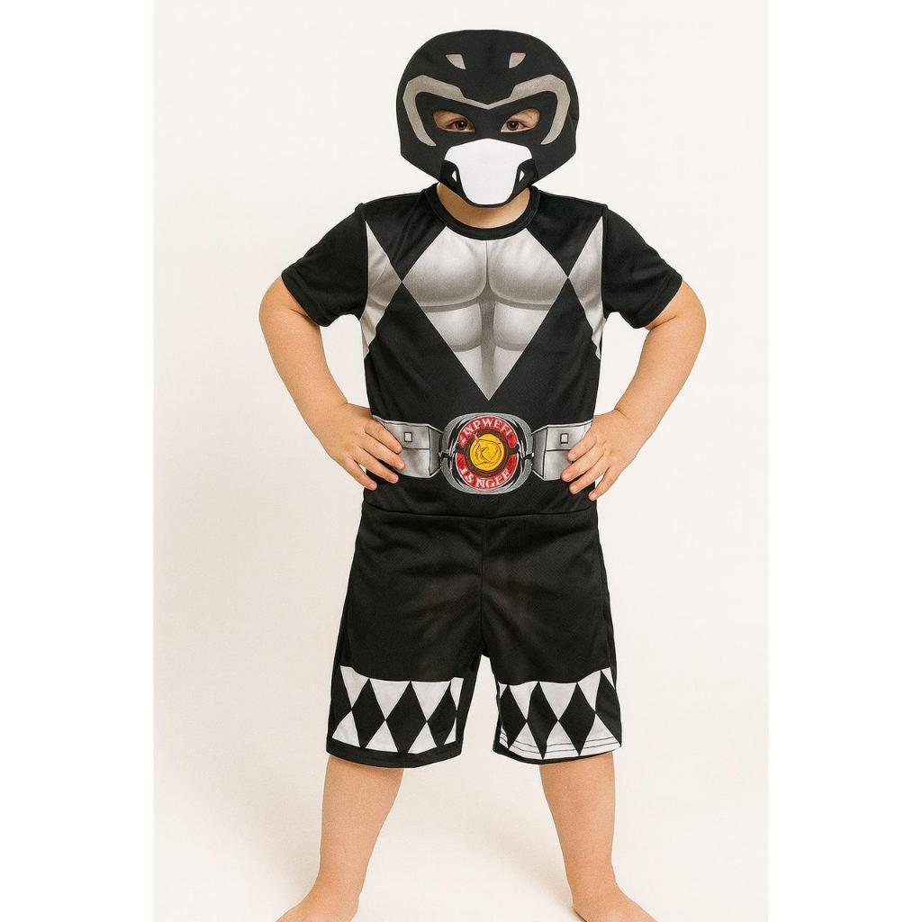 Fantasia Infantil PROMOÇÃO QUEIMA DE ESTOQUE Roupa Power Rangers Com Máscaras Preto Azul Verde e Vermelho