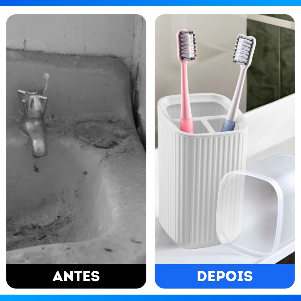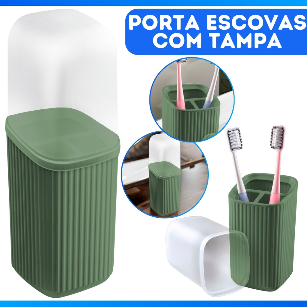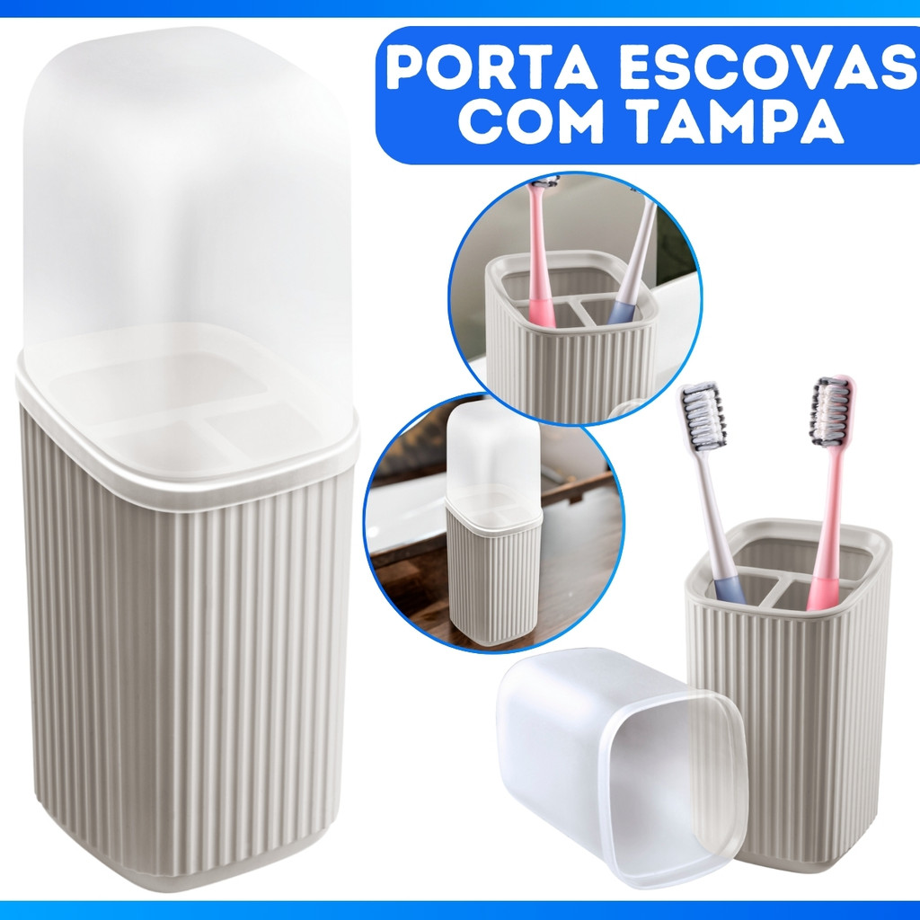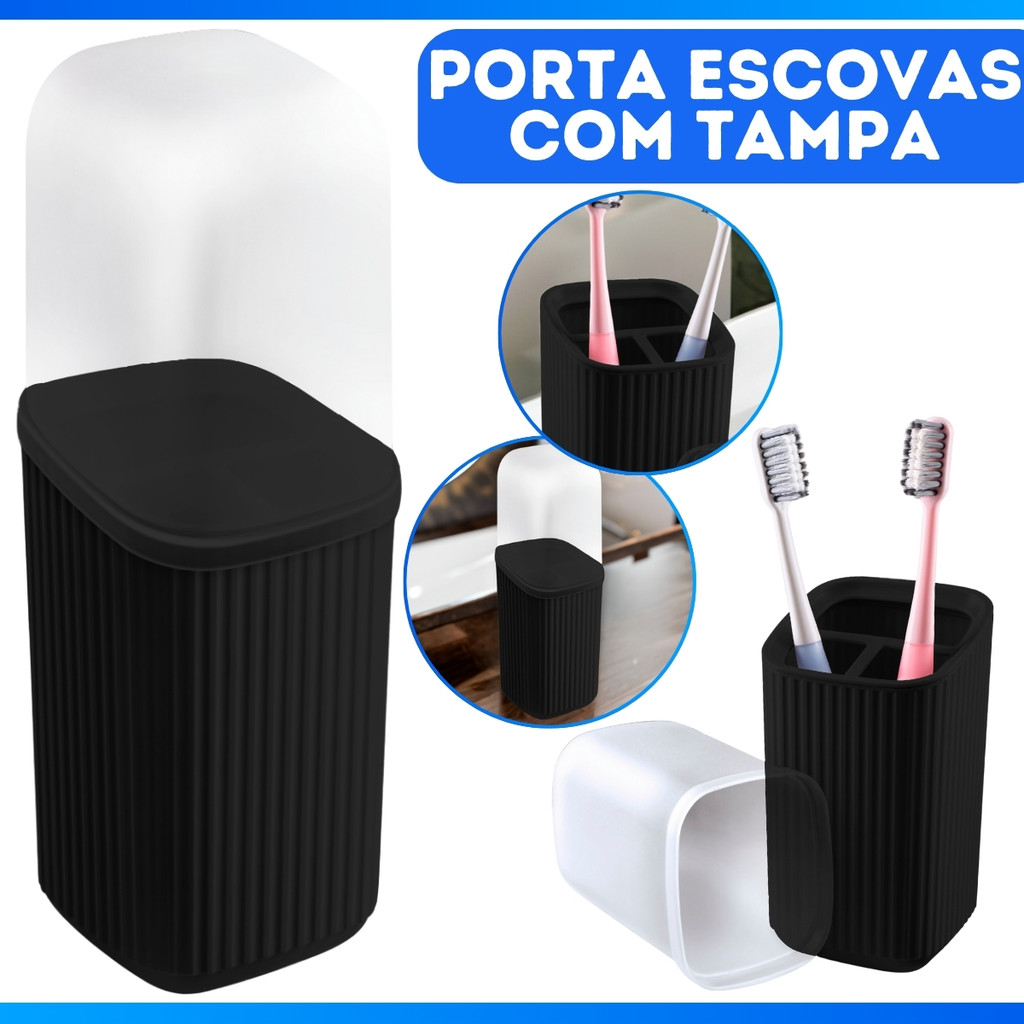 Porta Escova Dental De Pia Plástico Quadrado Com Tampa Moderno Luxo Banheiro Material Reforçado