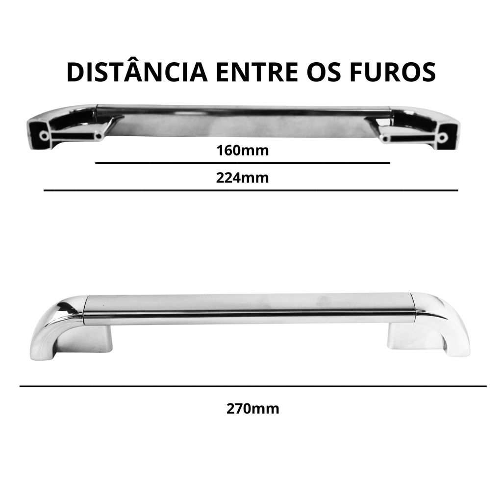 Kit c/3 Puxadores Tarsila 160/224mm para Armários e Móveis Cromado e Parafusos