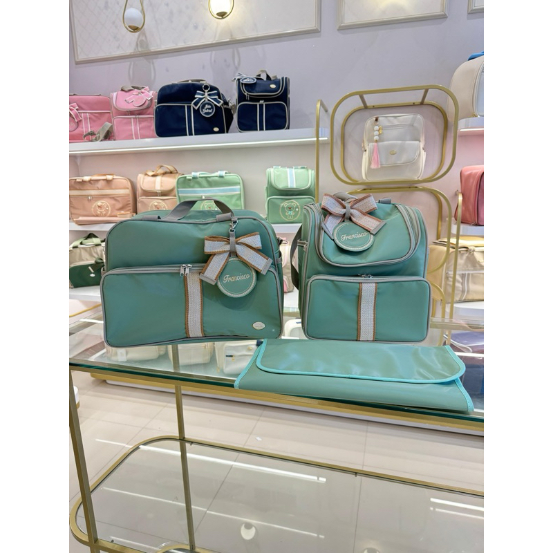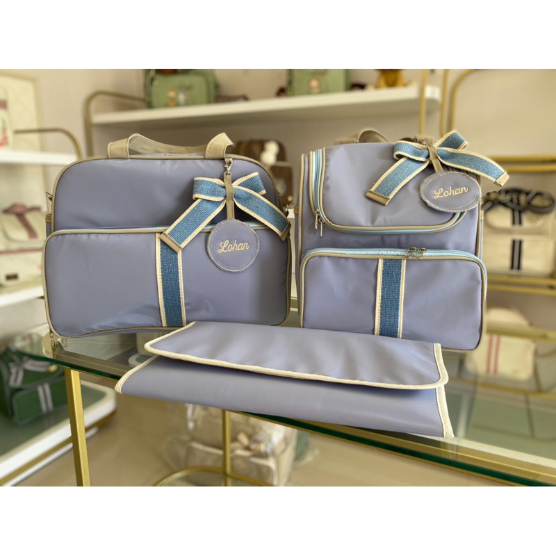 Kit Maternidade com Chaveiros Personalizado, Mala G, Mochila 2em1 e trocador, Universo Baby