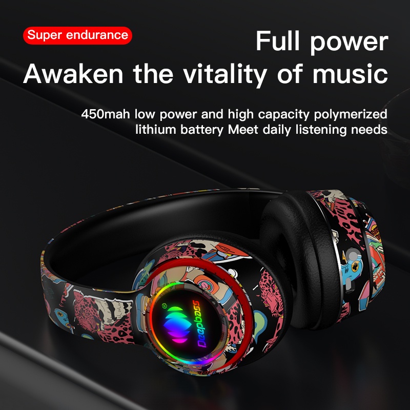 Novo L750 Colorido Graffiti Headset Bluetooth Fone De Ouvido Dobrável Subwoofer Cartão Esportes Fones Sem Fio Jogo headf