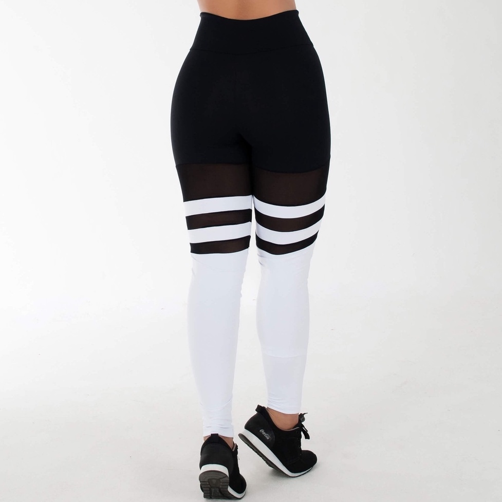 Calça Legging Academia Feminina Fitness Poliamida Preta e Branca
