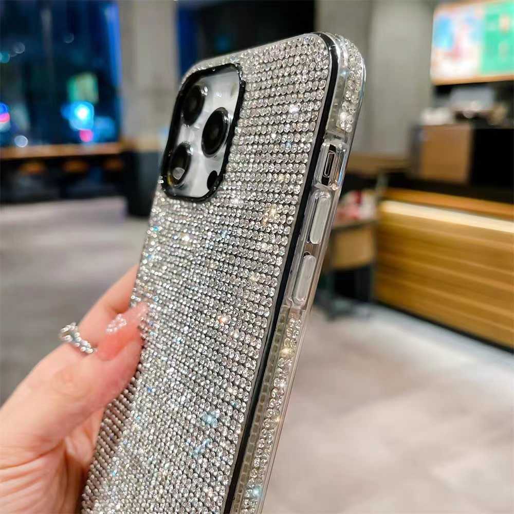 Luxo Glitter Strass Caso De Telefone Para iPhone 16 15 11 14 12 13 Pro Max 14Plus 15Plus Shniy Diamante Capa De Silicone