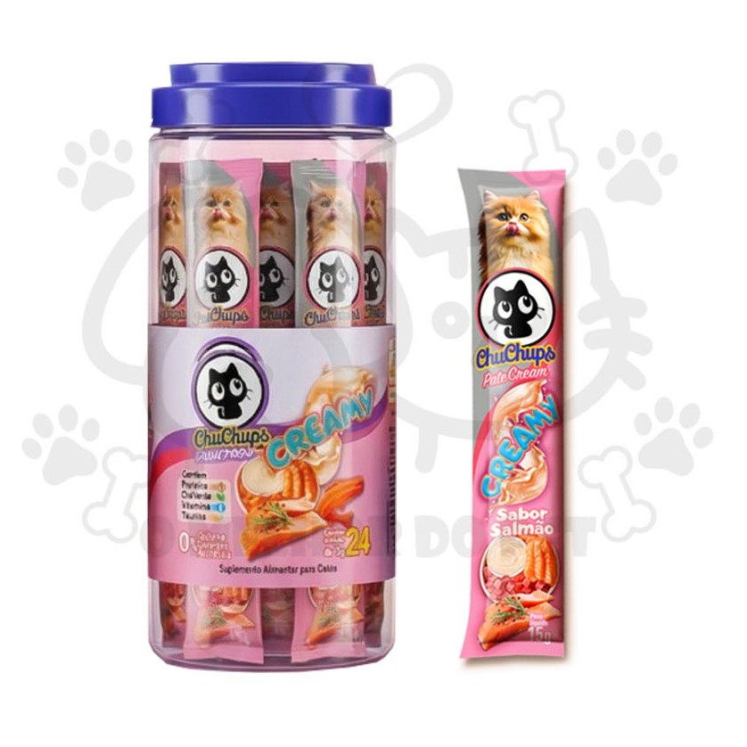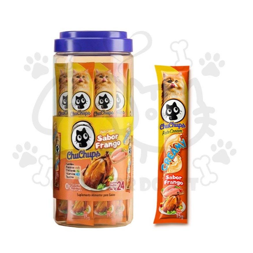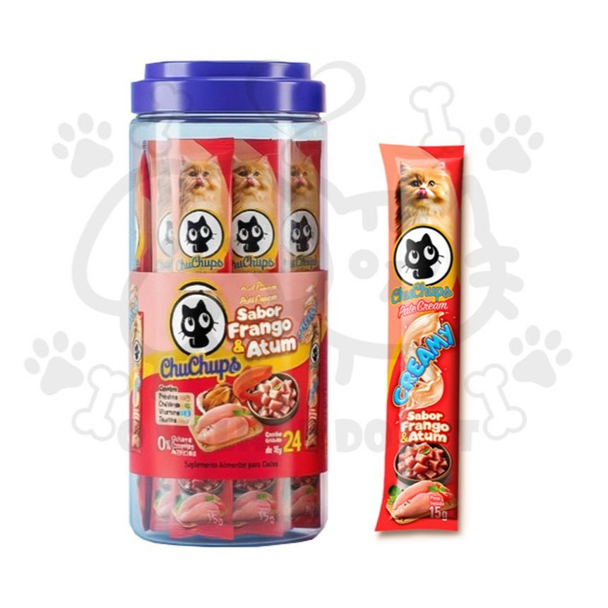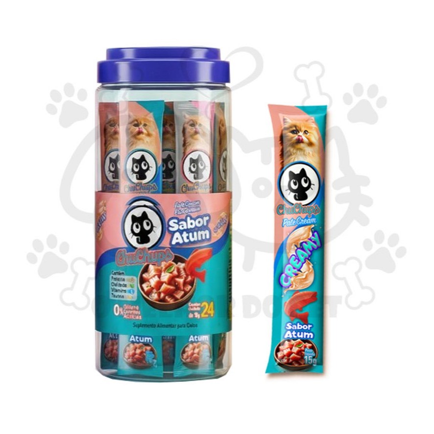 Petisco Para Gatos ChuChups Cream Pote Sabores com 24 Tubos de 15g Tipo Churu Truly