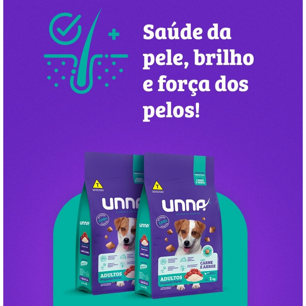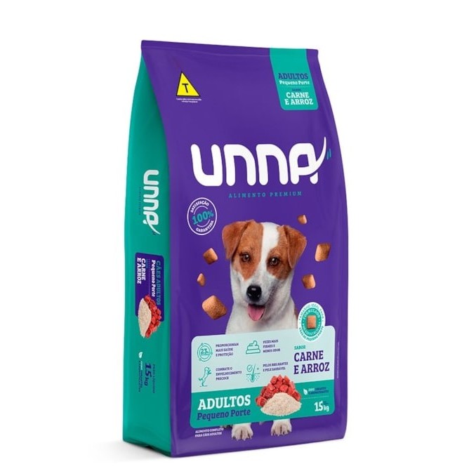 Ração Unna Premium Cães Adultos Pequeno Porte sabor Carne e Arroz 15Kg