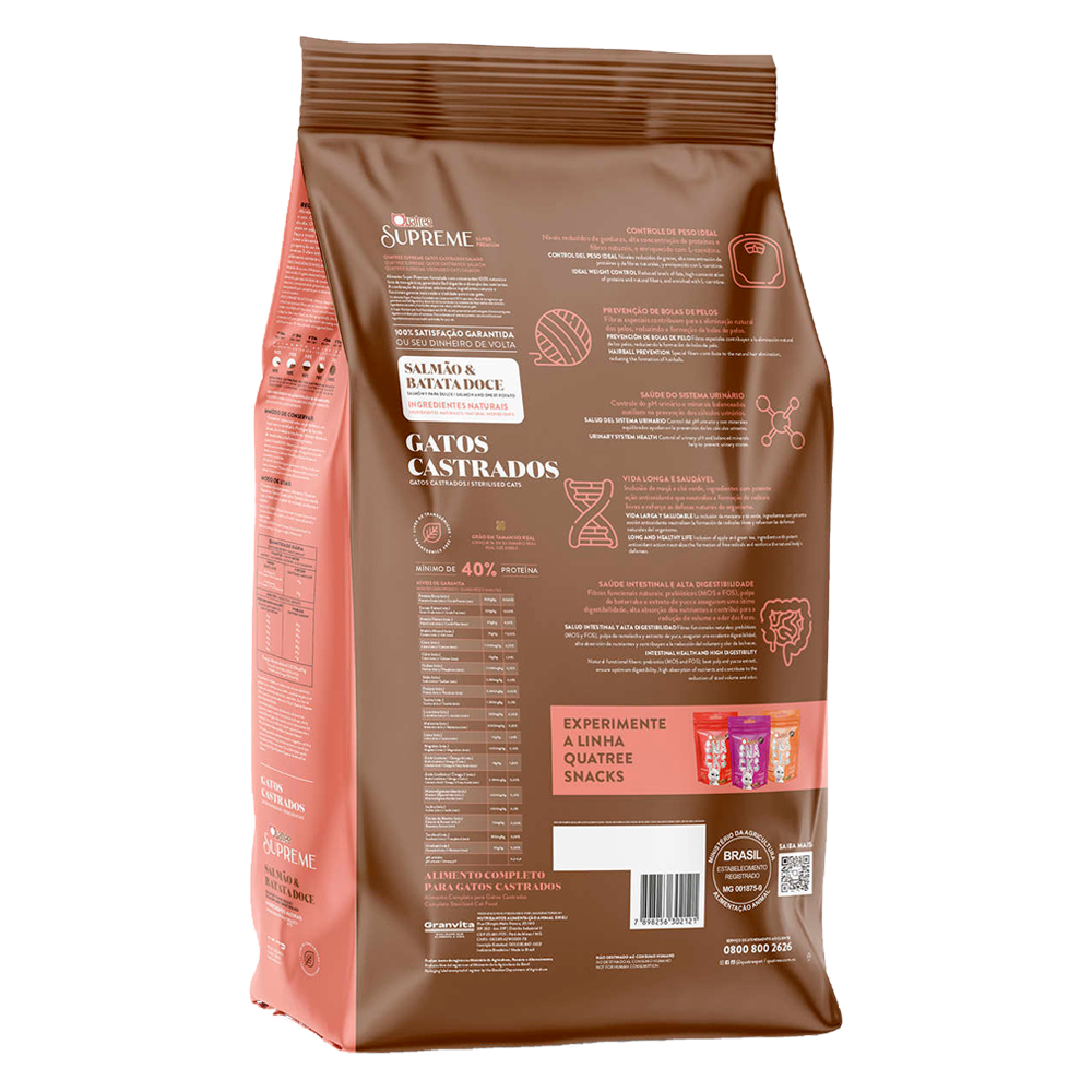 Ração Quatree Supreme Gatos Castrados sabor Salmão e Batata Doce 10.1 Kg