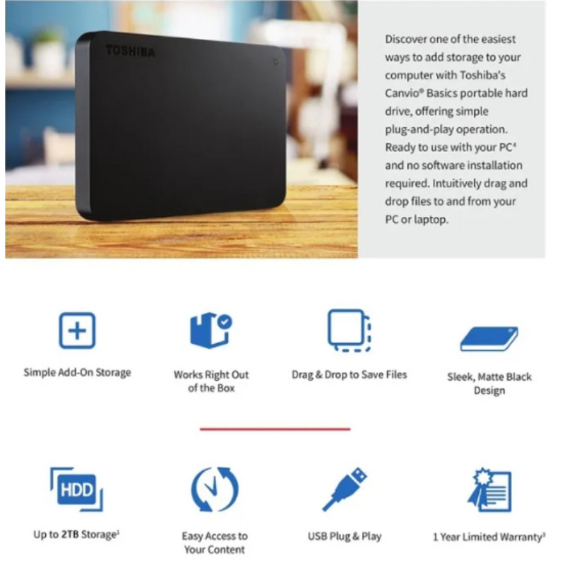 ⭐ Toshiba⭐ HD Externo1TB 2TB 4TB Disco rígido externo USB 3.0 Unidade De Disco Rígido Externo Hard Drive