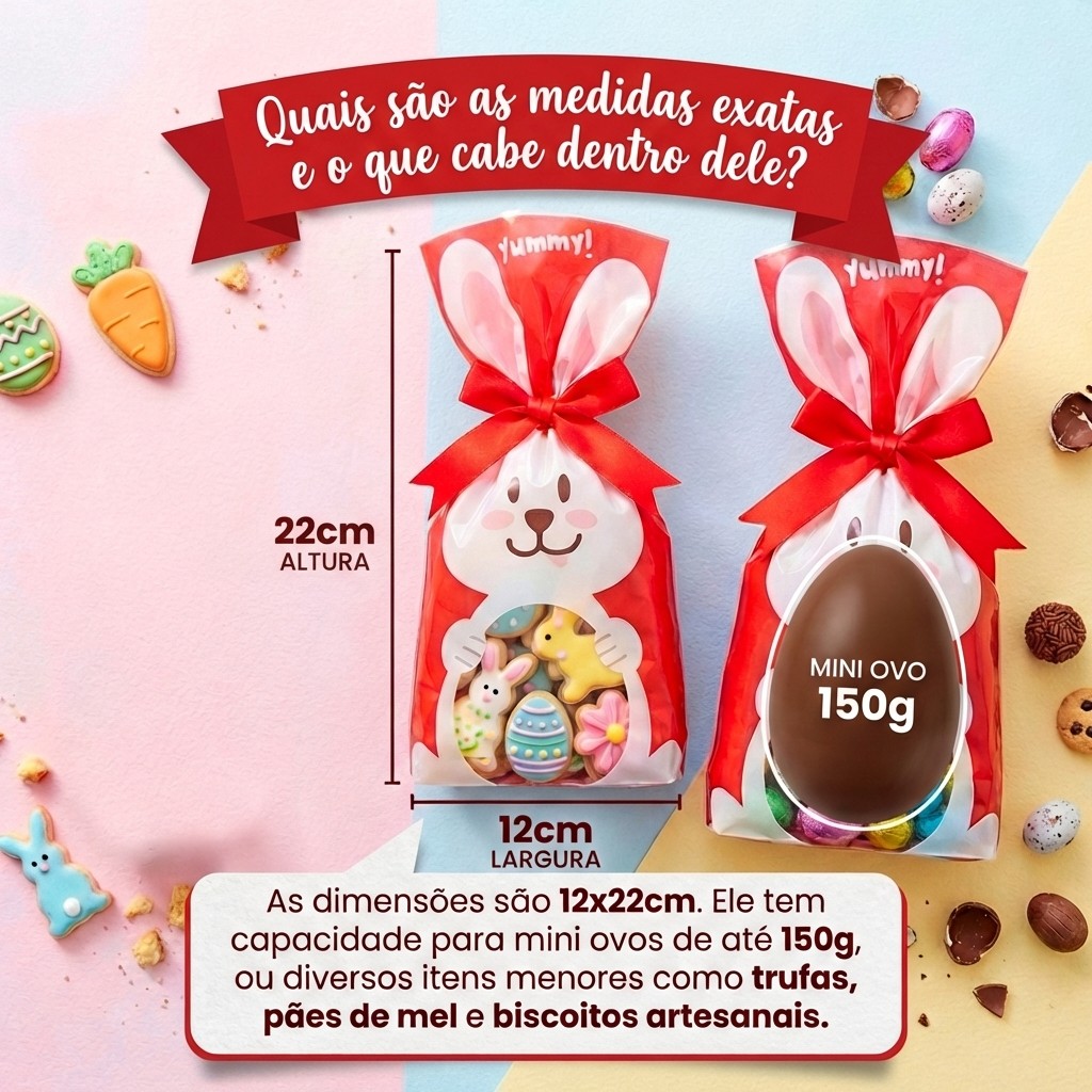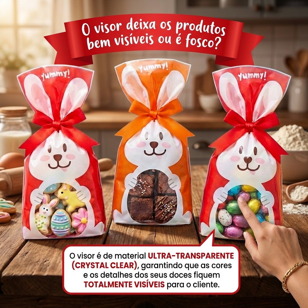 Saco Para Doces Bunny Visor 12x22cm Embalagem Lembrancinha Páscoa