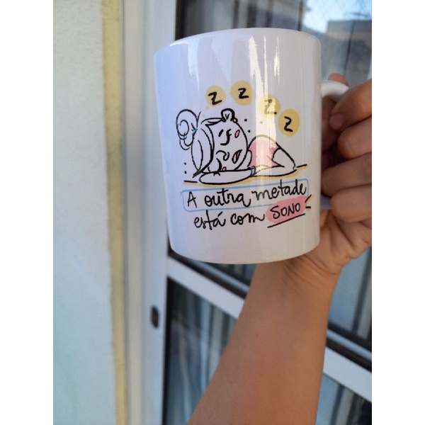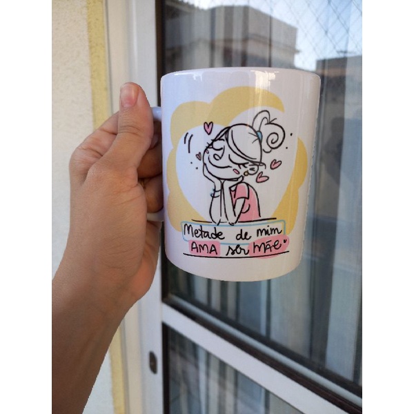 Caneca divertida metade de mim ama ser mãe... A outra metade está com sono
