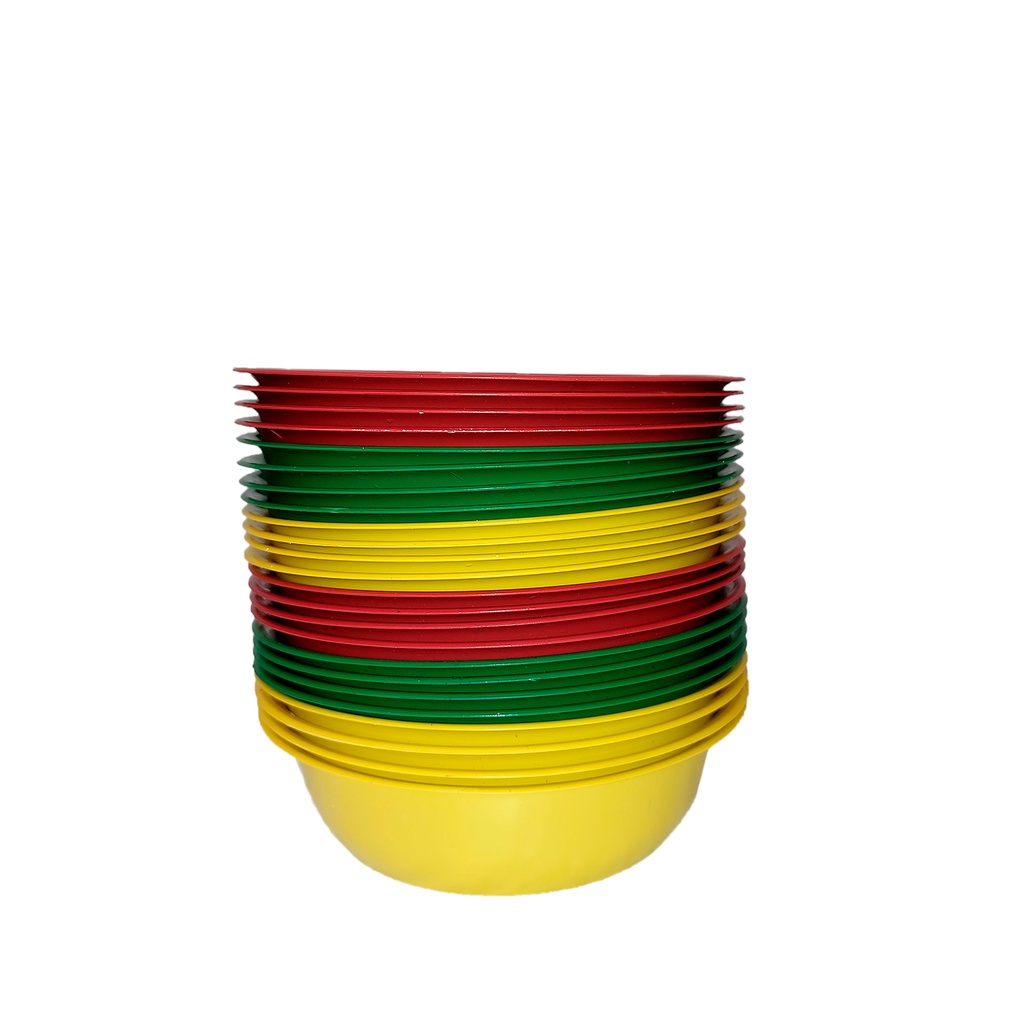 FARDO 12 BACIAS COLORIDAS 23CM RASA 1.500ML PARA FEIRANTES
