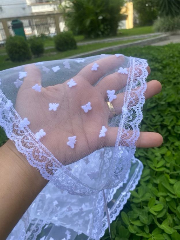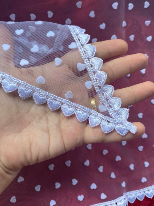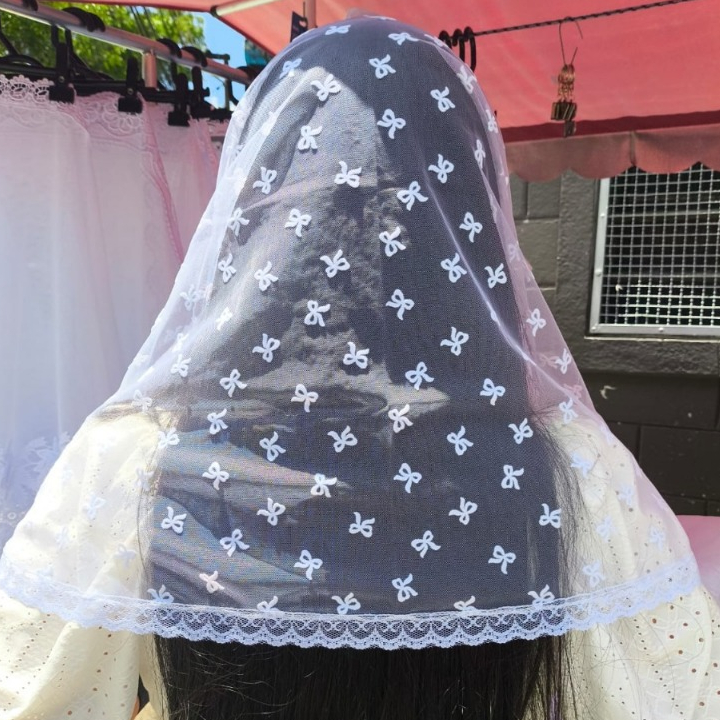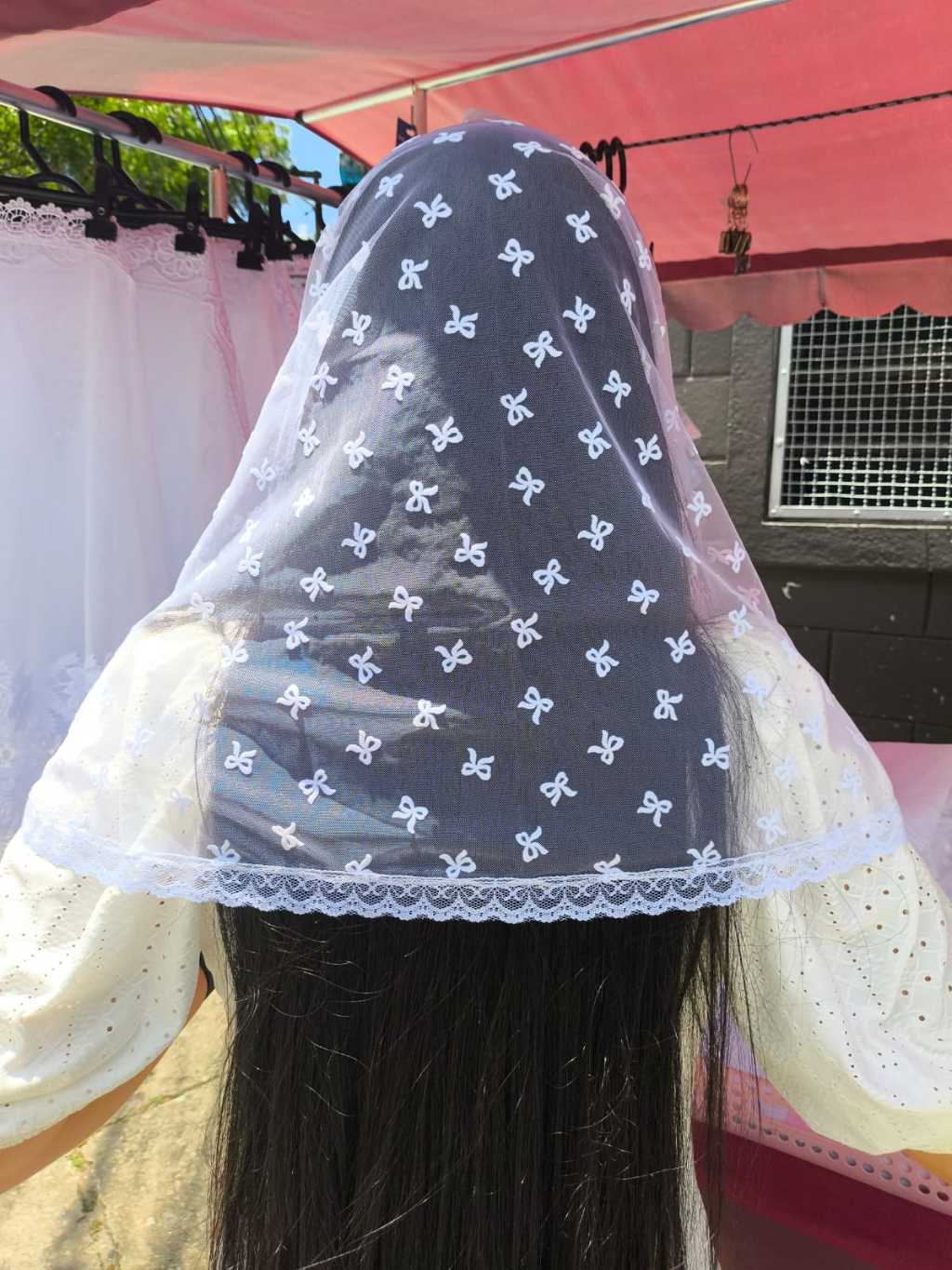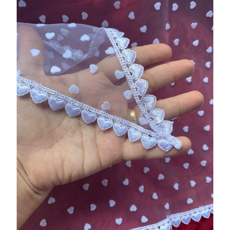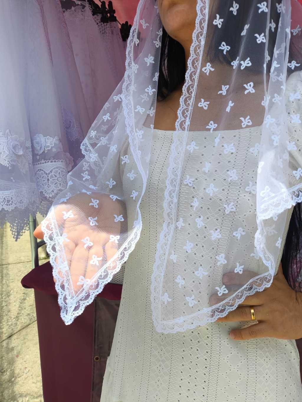 Véu CCB Congregação Adulto Poá Transparente Coração ou Laço Lacinho Bico Redondo Rendado Mod-064/5/7/8