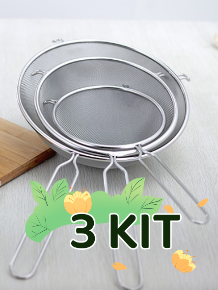 Kit 3 Peneira Coador De Peneiras Aço Inoxidável Para Cozinha Peneira De Cozinha